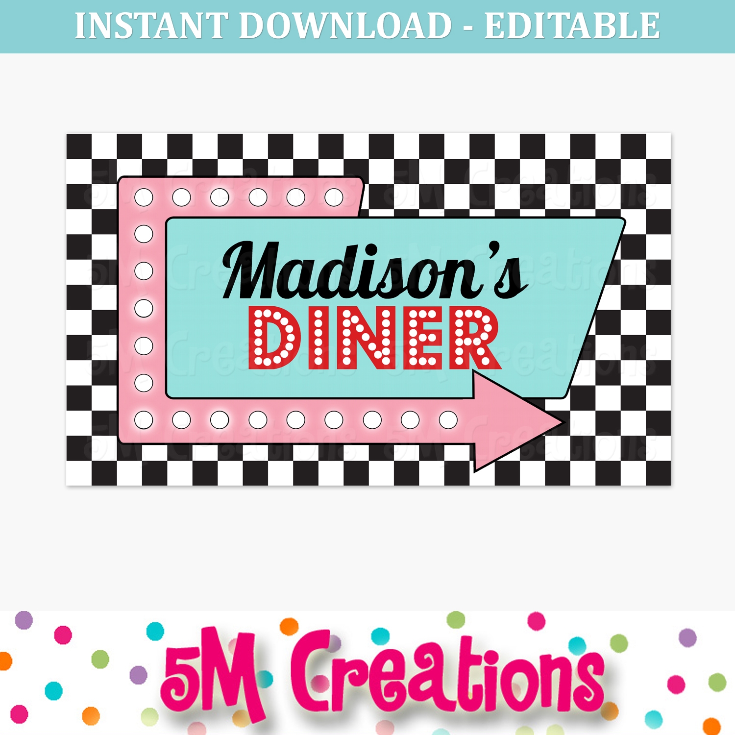 50s Diner Birthday Party Backdrop Large Sign Editable Printable Poster 5M Creations Blog