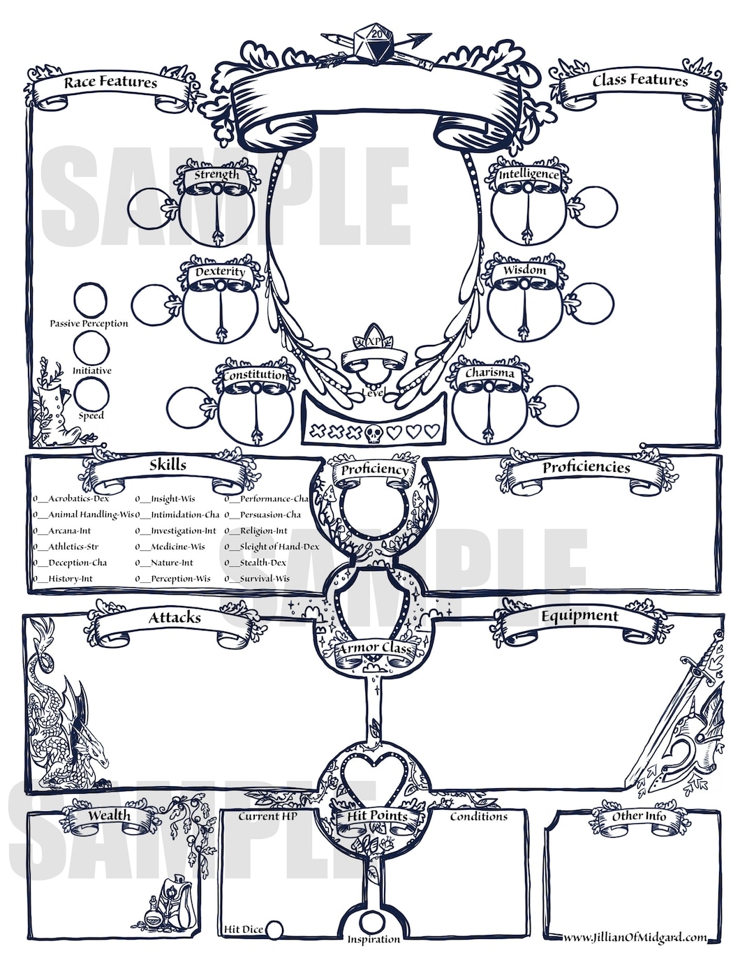 D D 5e Woodblock Print Styled Character Sheet By Laplace Atelier