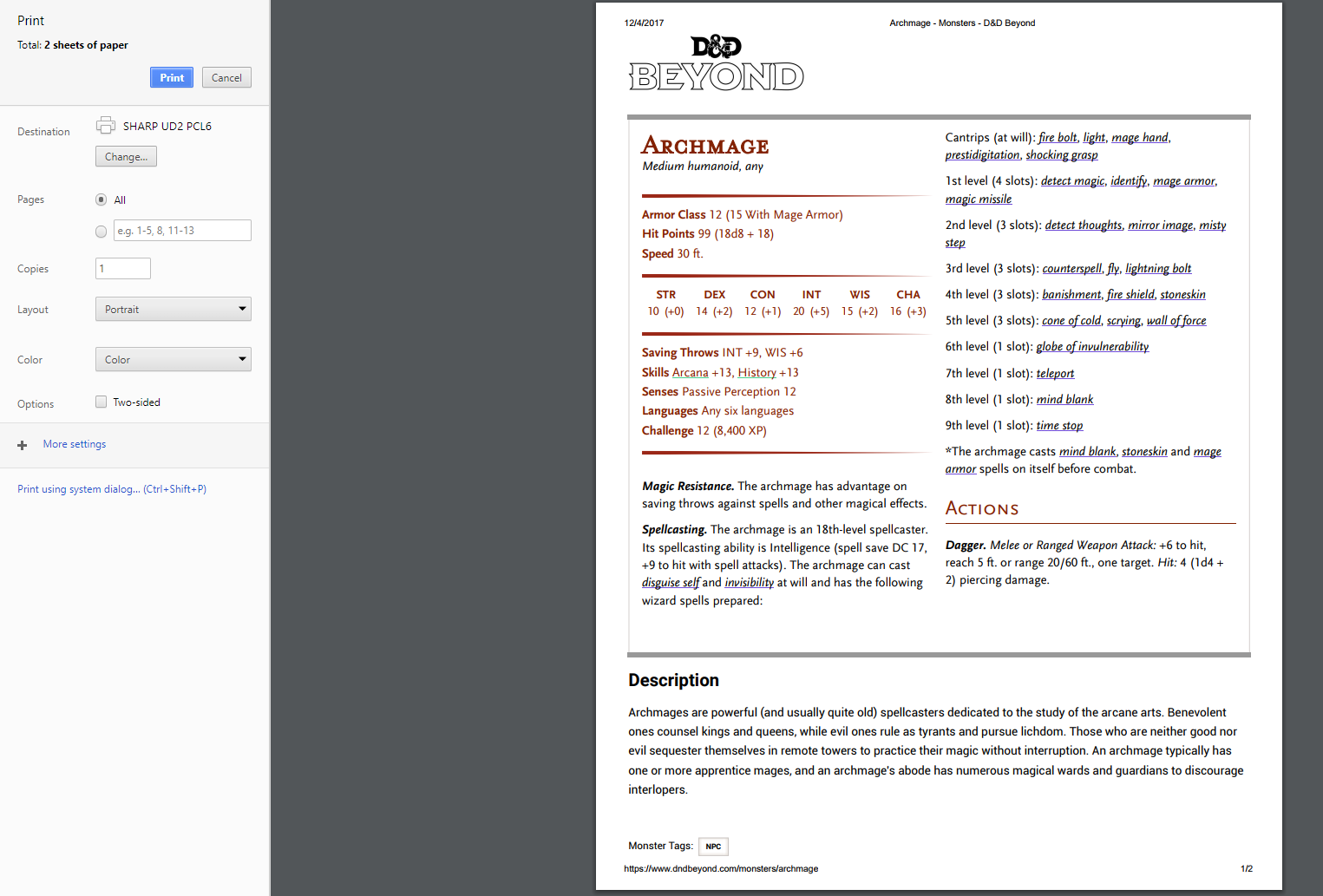 Monster Stat Block and Print View Updates Old Changelog D D Beyond