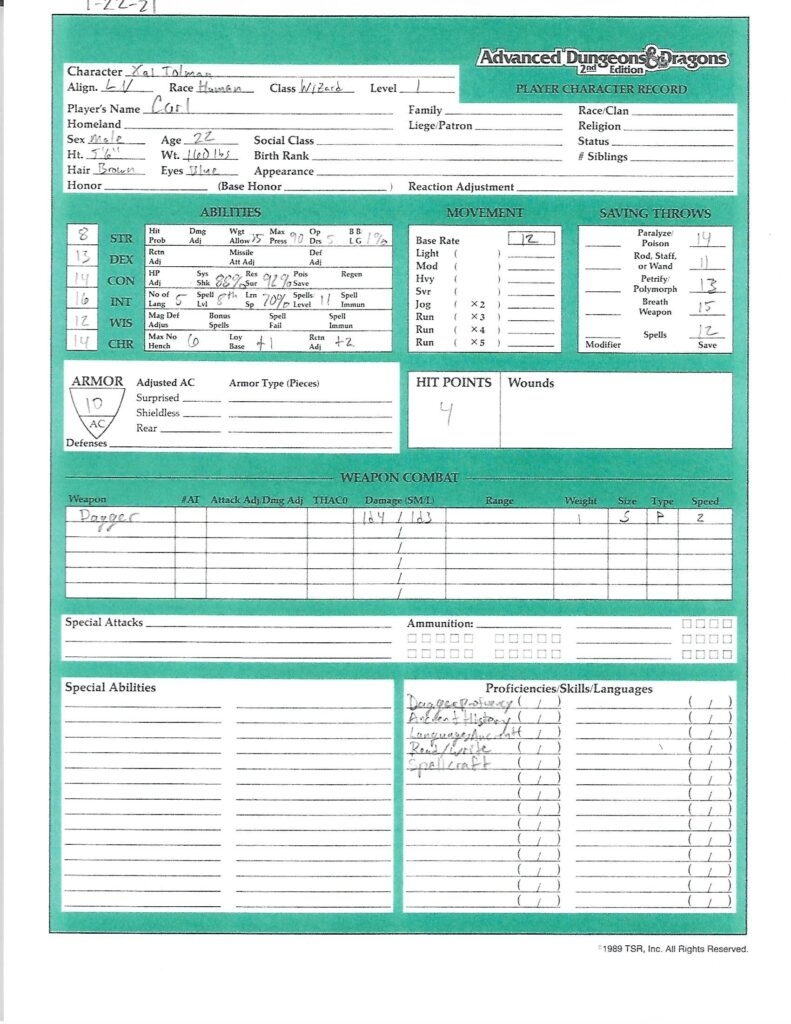 Character Creation Challenge Day 22 Advanced Dungeons And Dragons 2nd Edition TardisCaptain s Blog Of Holding