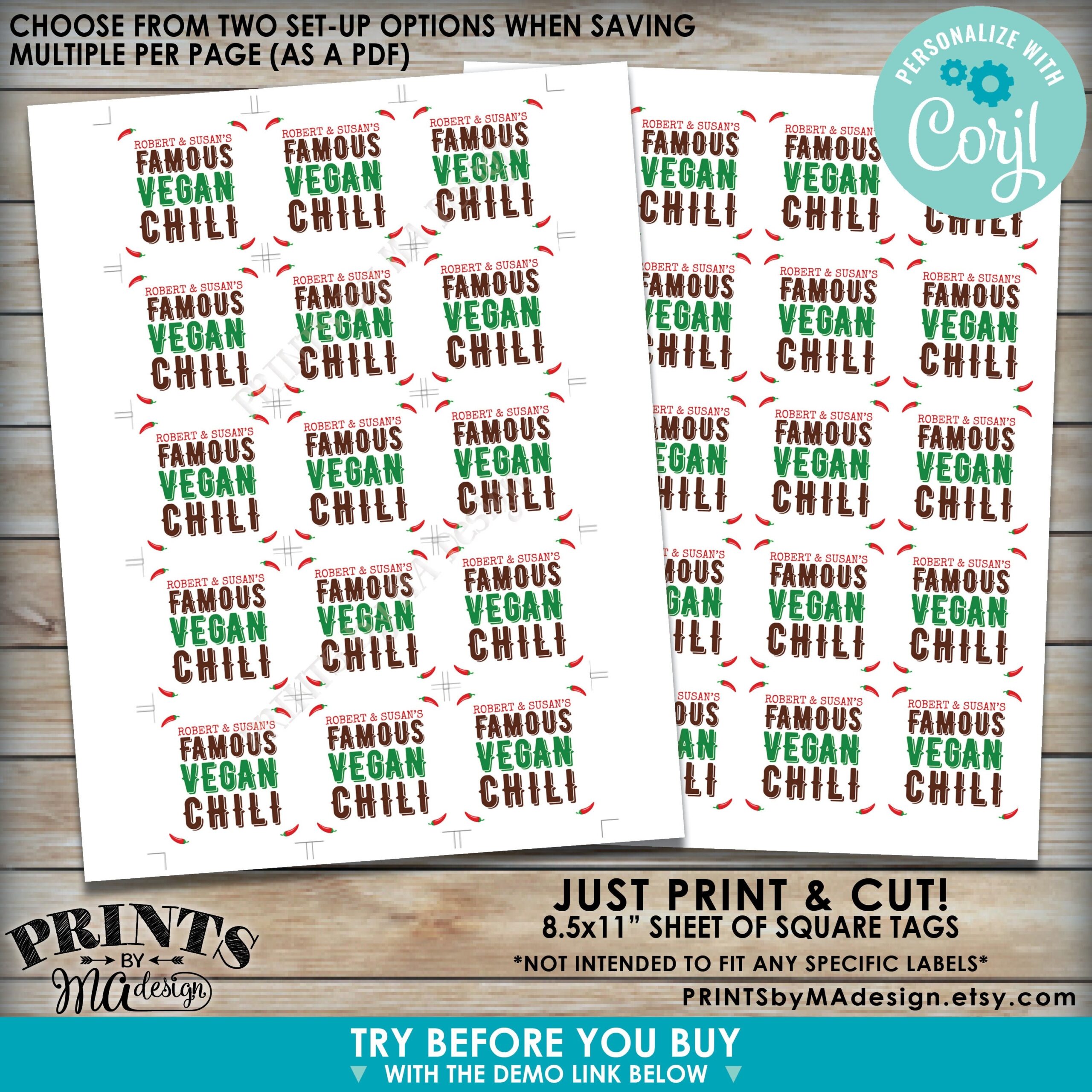 Editable Chili Labels Chili Cook Off Voting Ballots 2 Square Cards On A Digital PRINTABLE 8 5×11 File