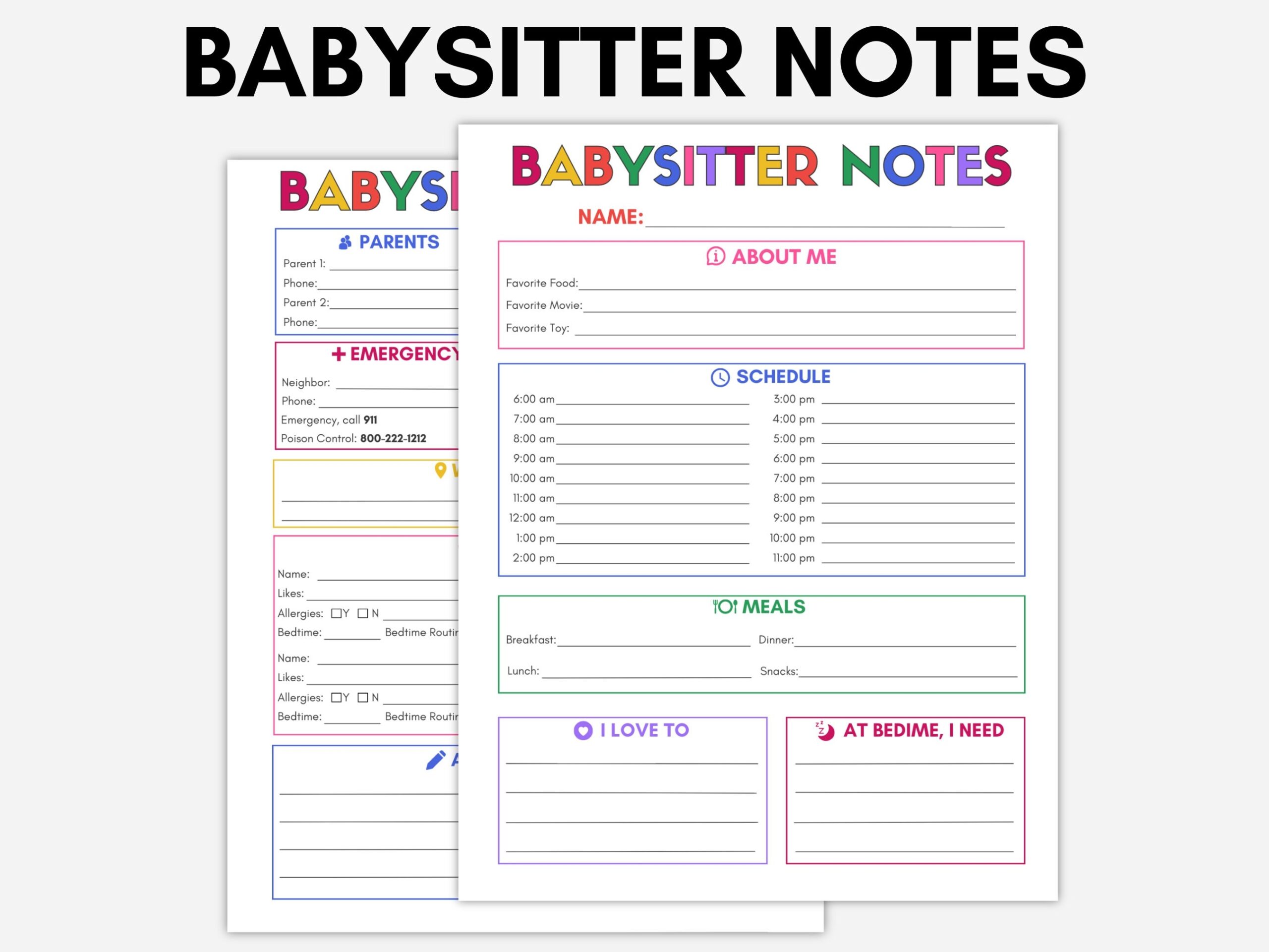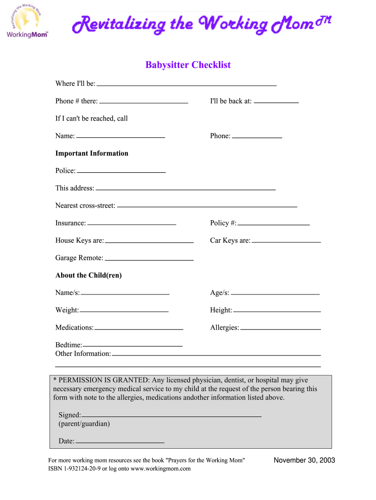 Babysitter Information Sheet Babysitter Checklist Printable Babysitter Info Sheet Childcare Notes Babysitter Guide Instant Download Etsy