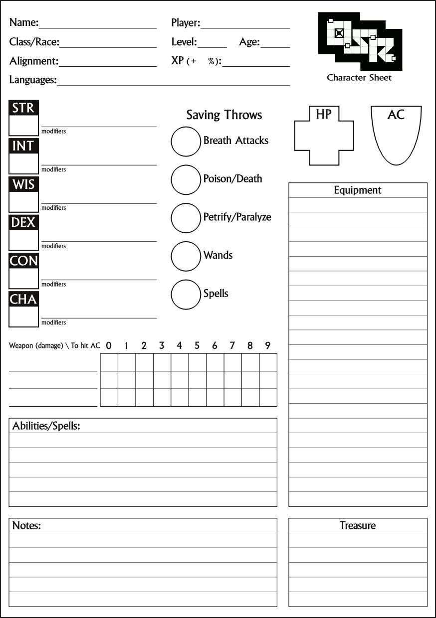 Basic Dungeons And Dragons 1st Edition Character Sheet Printable
