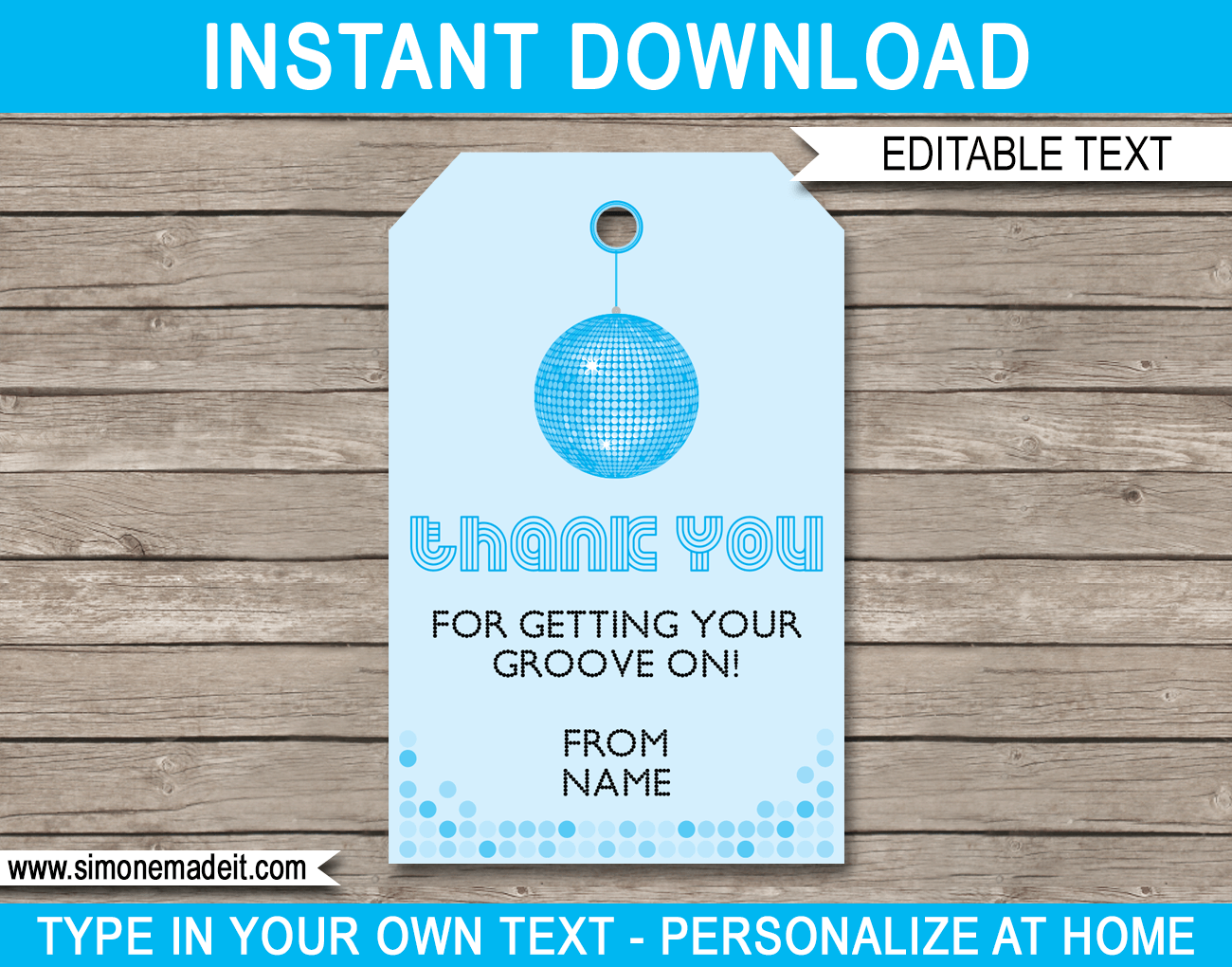 Disco Birthday Party Favor Tags Template Thank You Tags Dance Party
