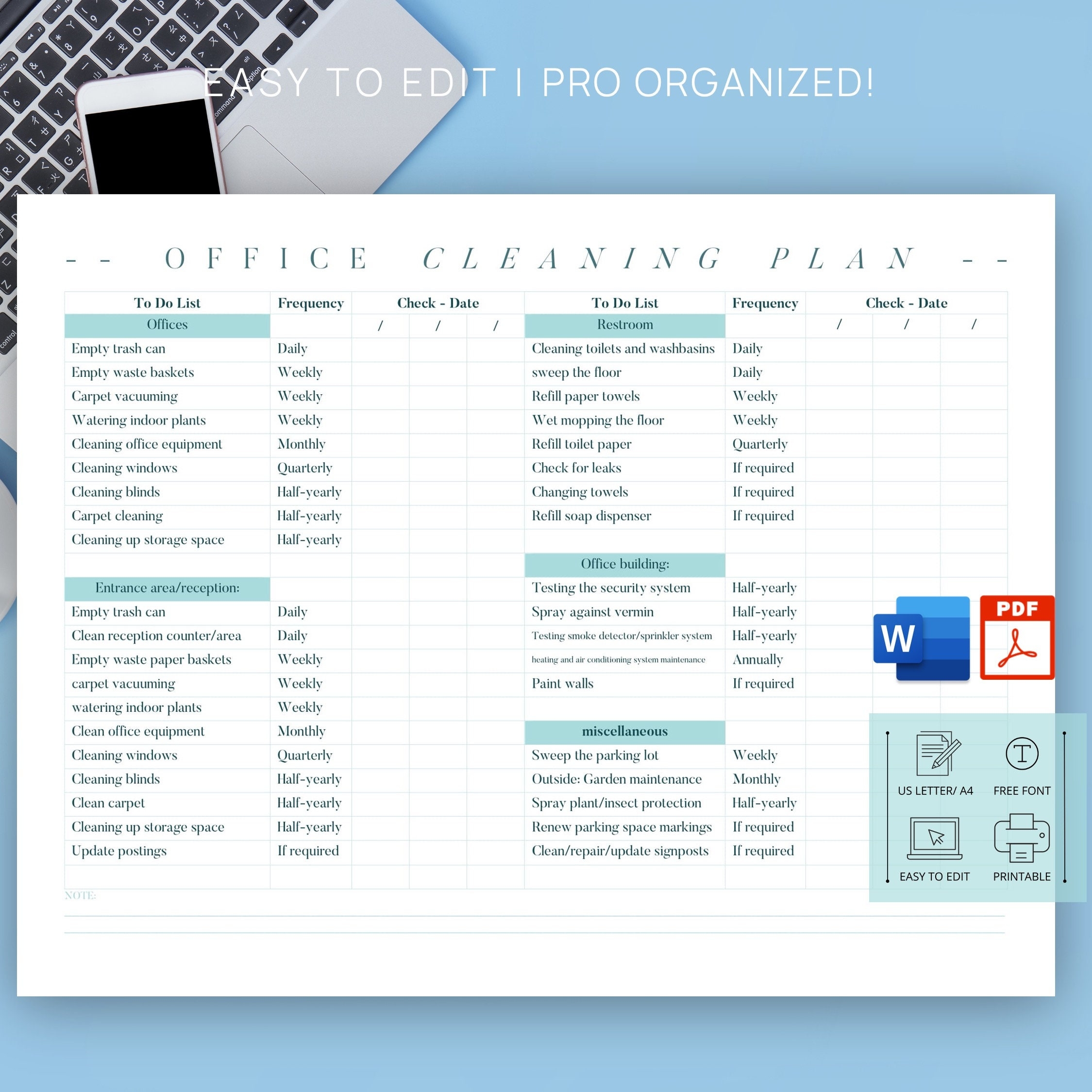Editable Office Cleaning Checklist Template Frequency Chart word File office Cleaning Plan Printable Etsy