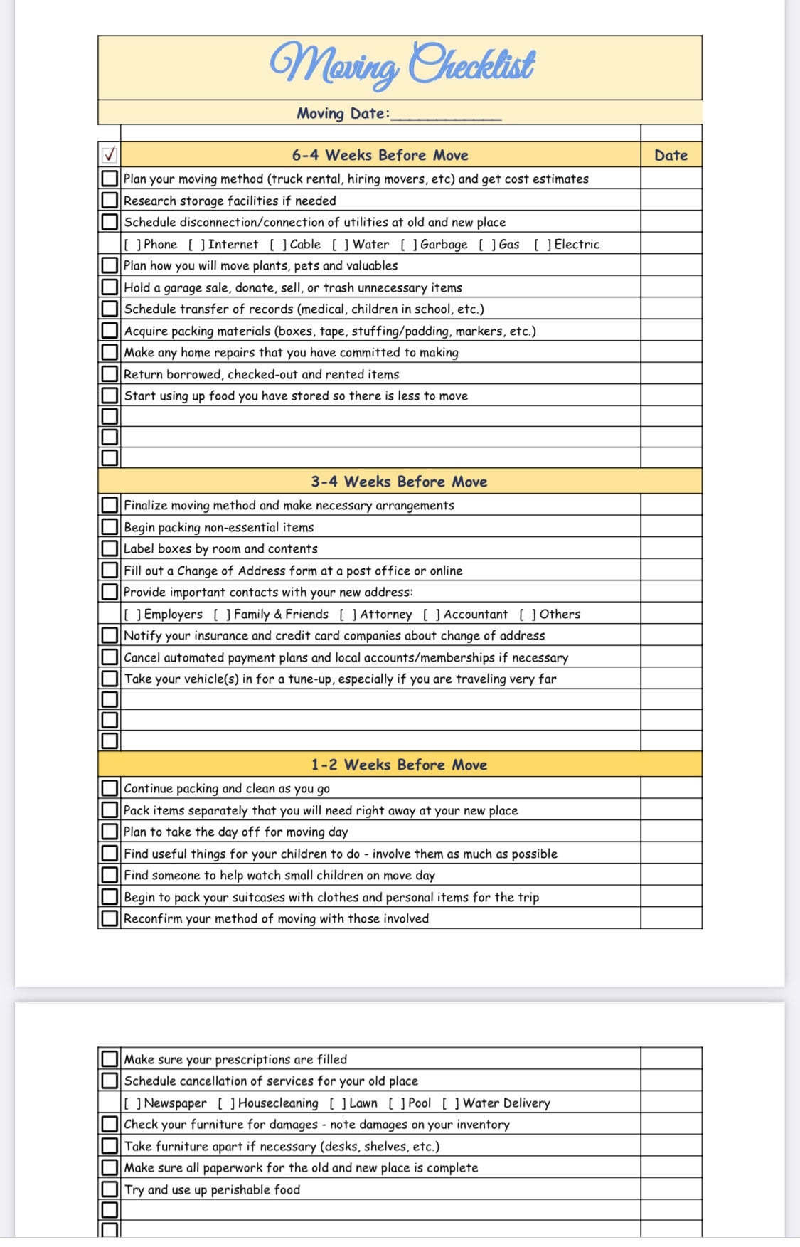 Moving Checklist TEMPLATE File Available For Openoffice spreadsheet And Text Document MS Word MS Excel Pdf File Digital Download Etsy