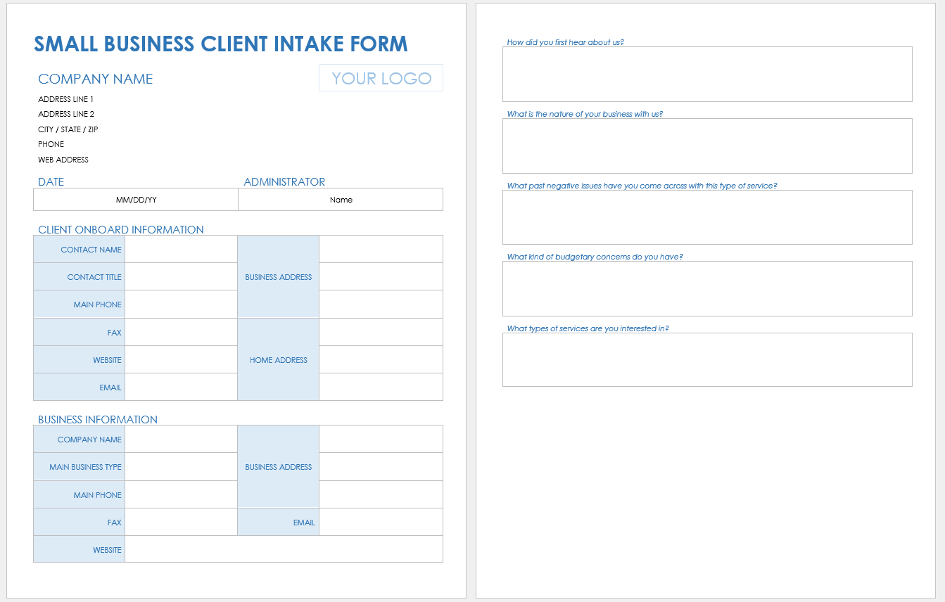 Free Printable Client Intake Form Templates Word PDF Excel Example