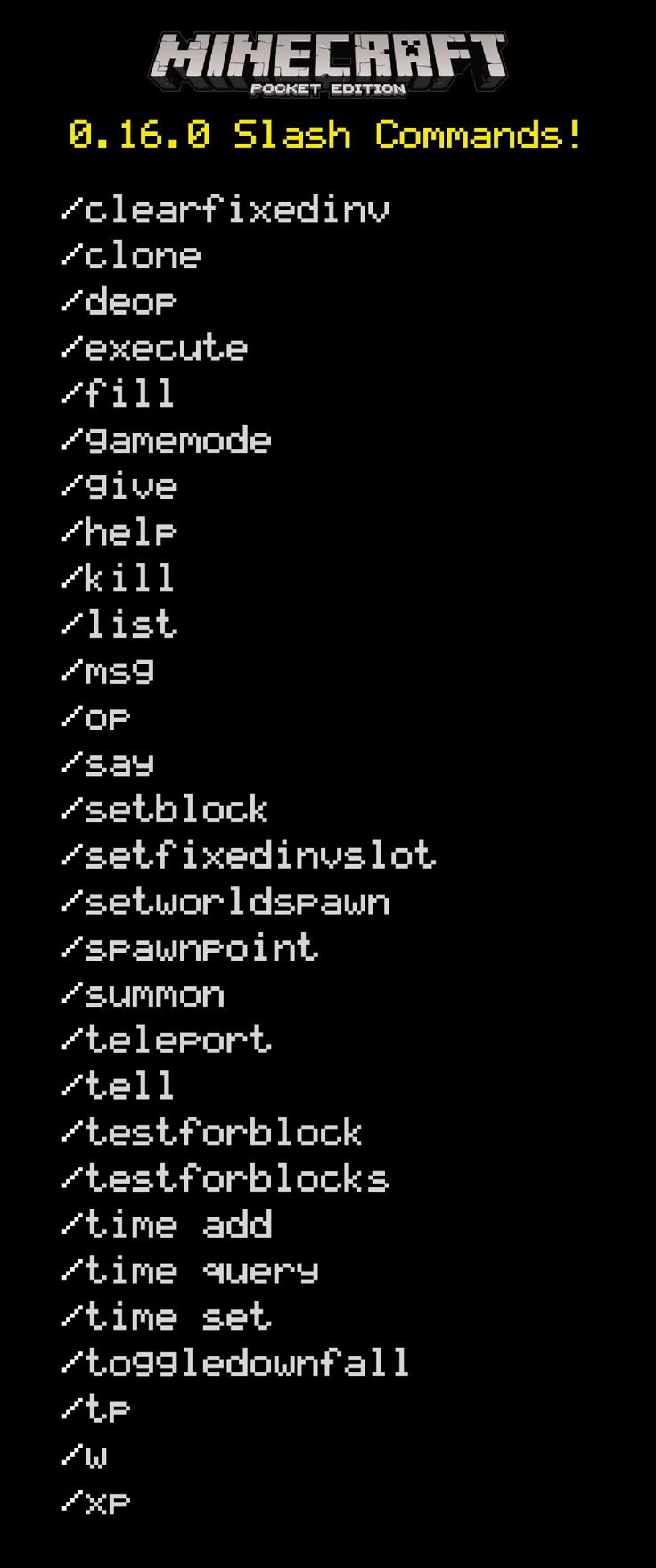 Https mcpehq news minecraft pe slash command list 0 16 0 MCPE 0 16 Slash Commands Have Been Announced