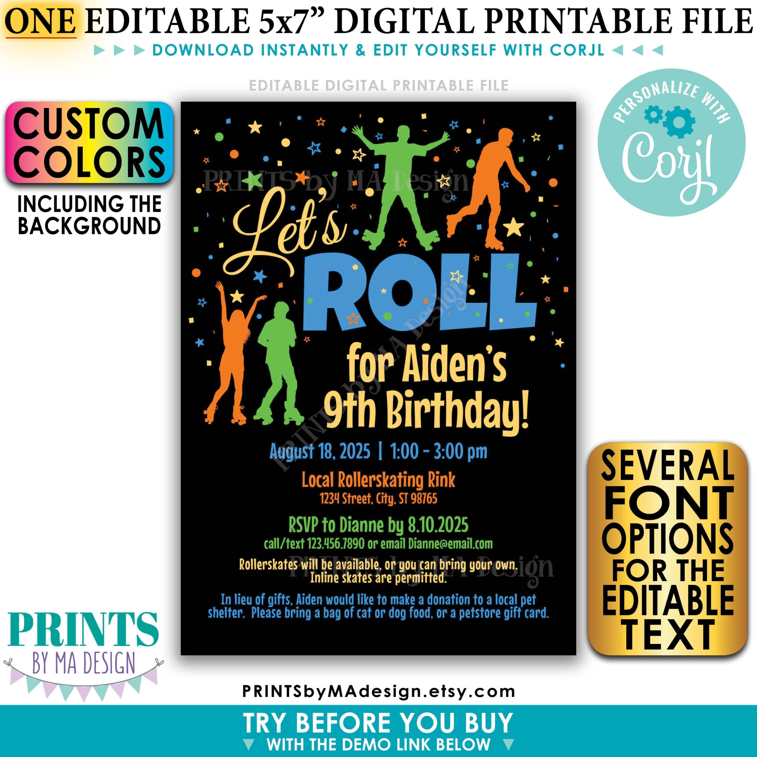SALE Roller Skating Birthday Invitation Editable Invite Inline Skate Party Custom PRINTABLE 5×7 Digital File