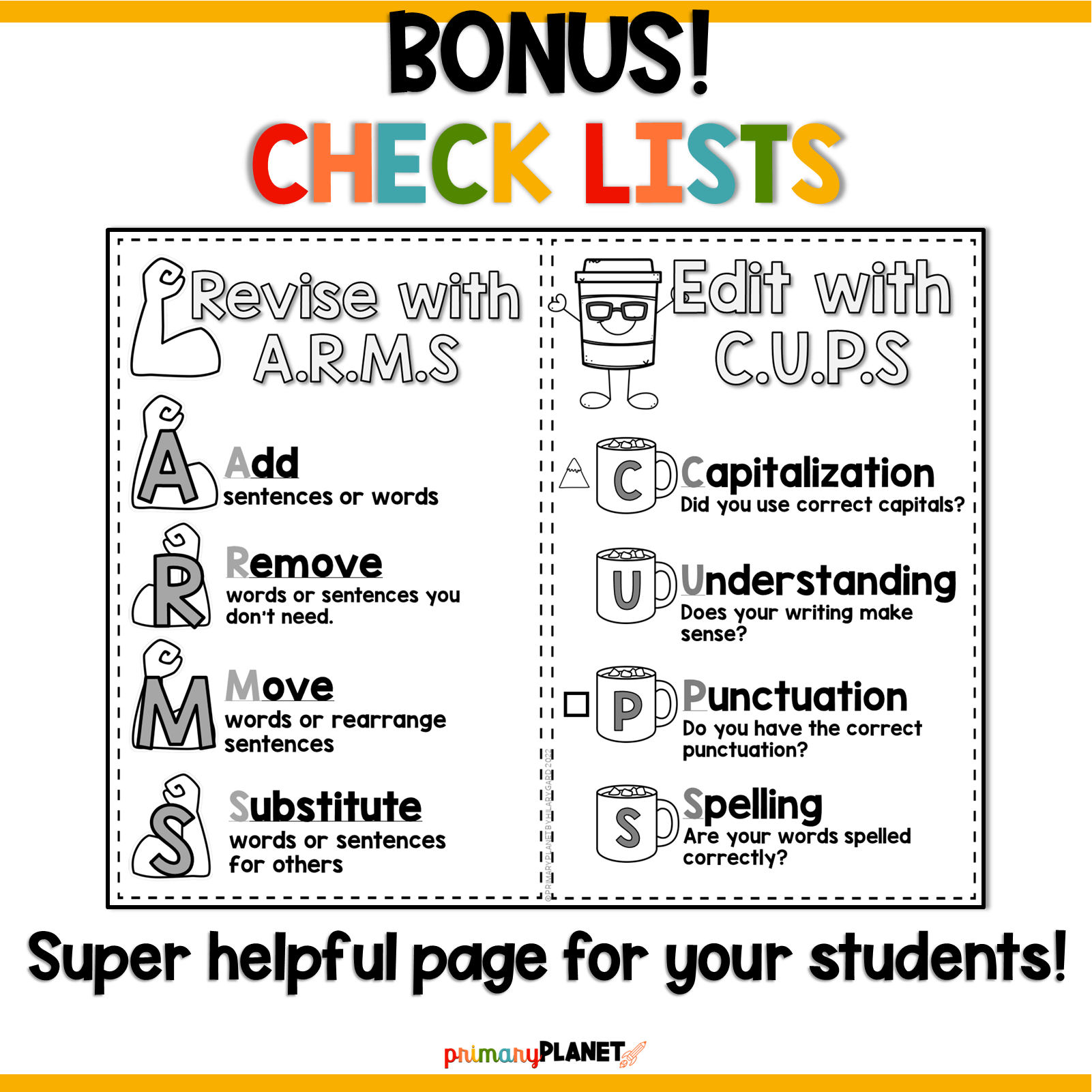 Revise Edit Posters Checklists CUPS Editing Writing Strategy ARMS Revision Writing Strategy Writing Checklist Instant Download Etsy