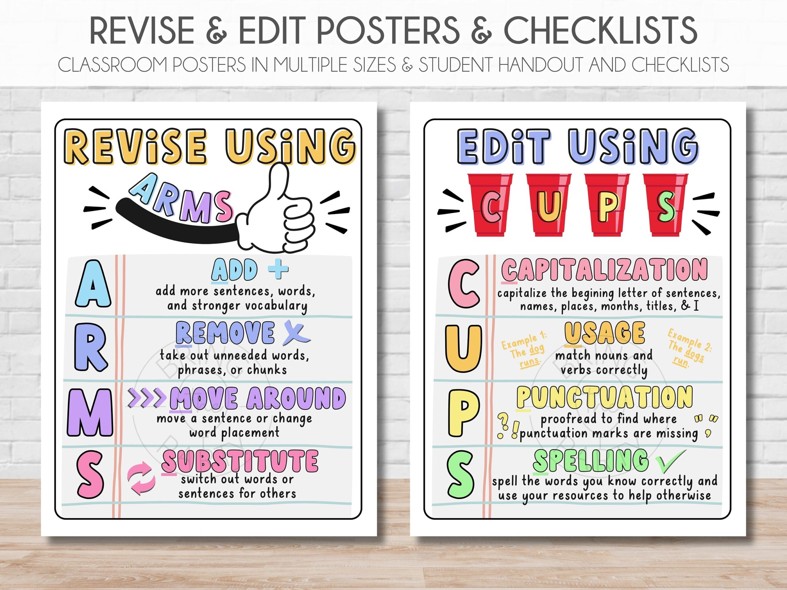 CUPS And ARMS Posters Editing And Revising Writing Strategies Teacher s Aid To Transform English Writing Skills Etsy
