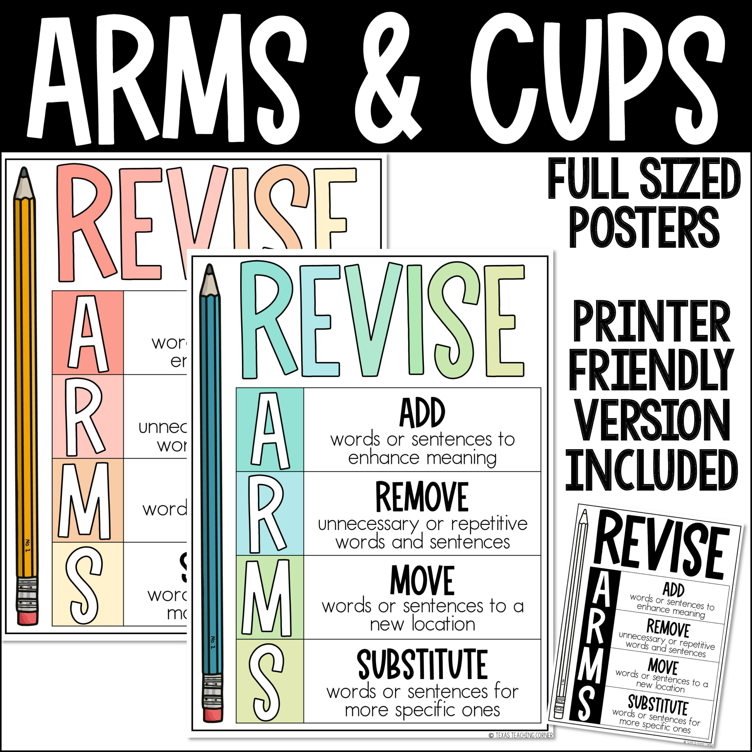 CUPS And ARMS Posters Editing And Revising Writing Strategies Teacher s Aid To Transform English Writing Skills Etsy