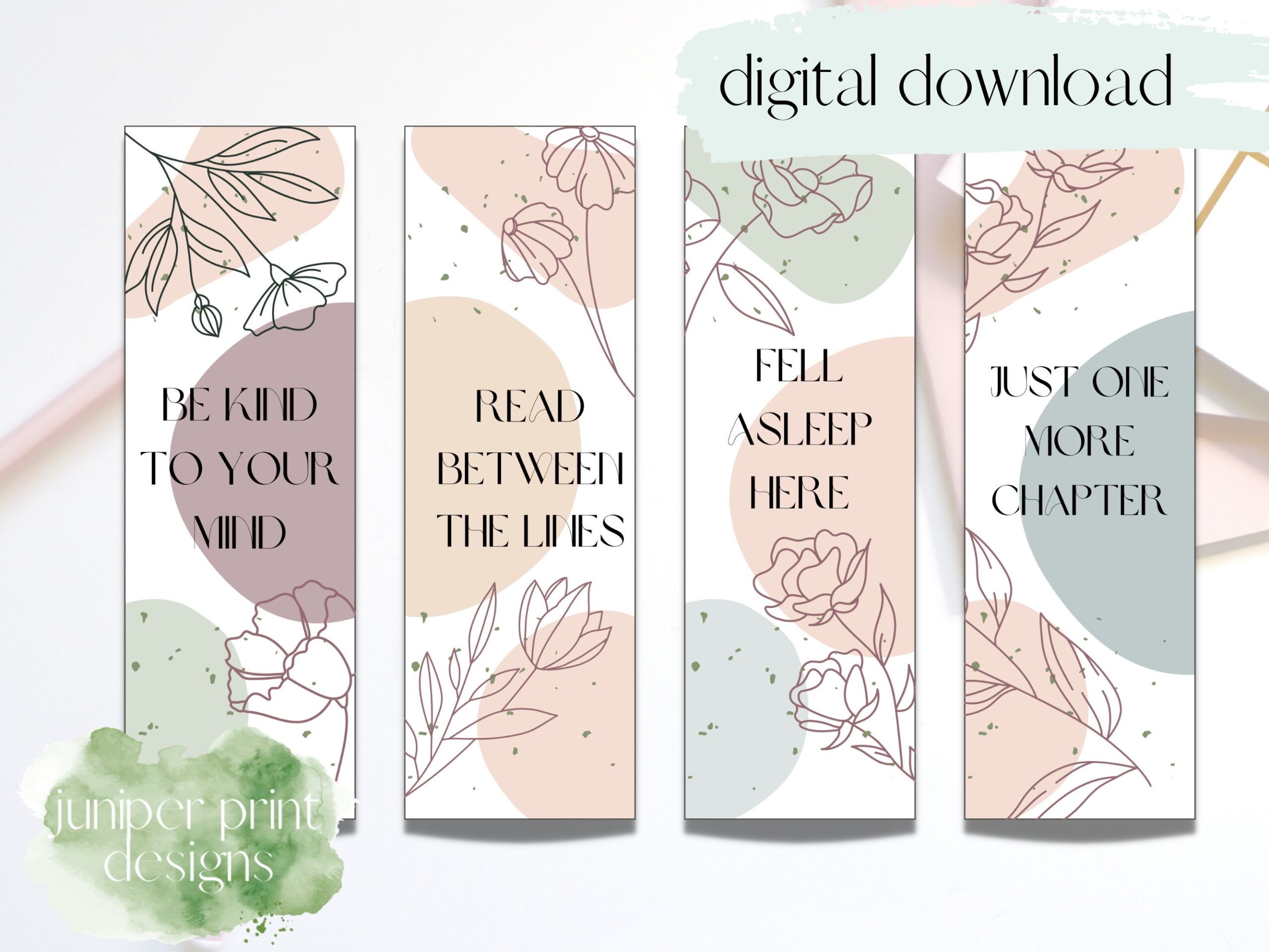 Floral Quote Bookmark Set Printable Reading Gift digital Download Etsy
