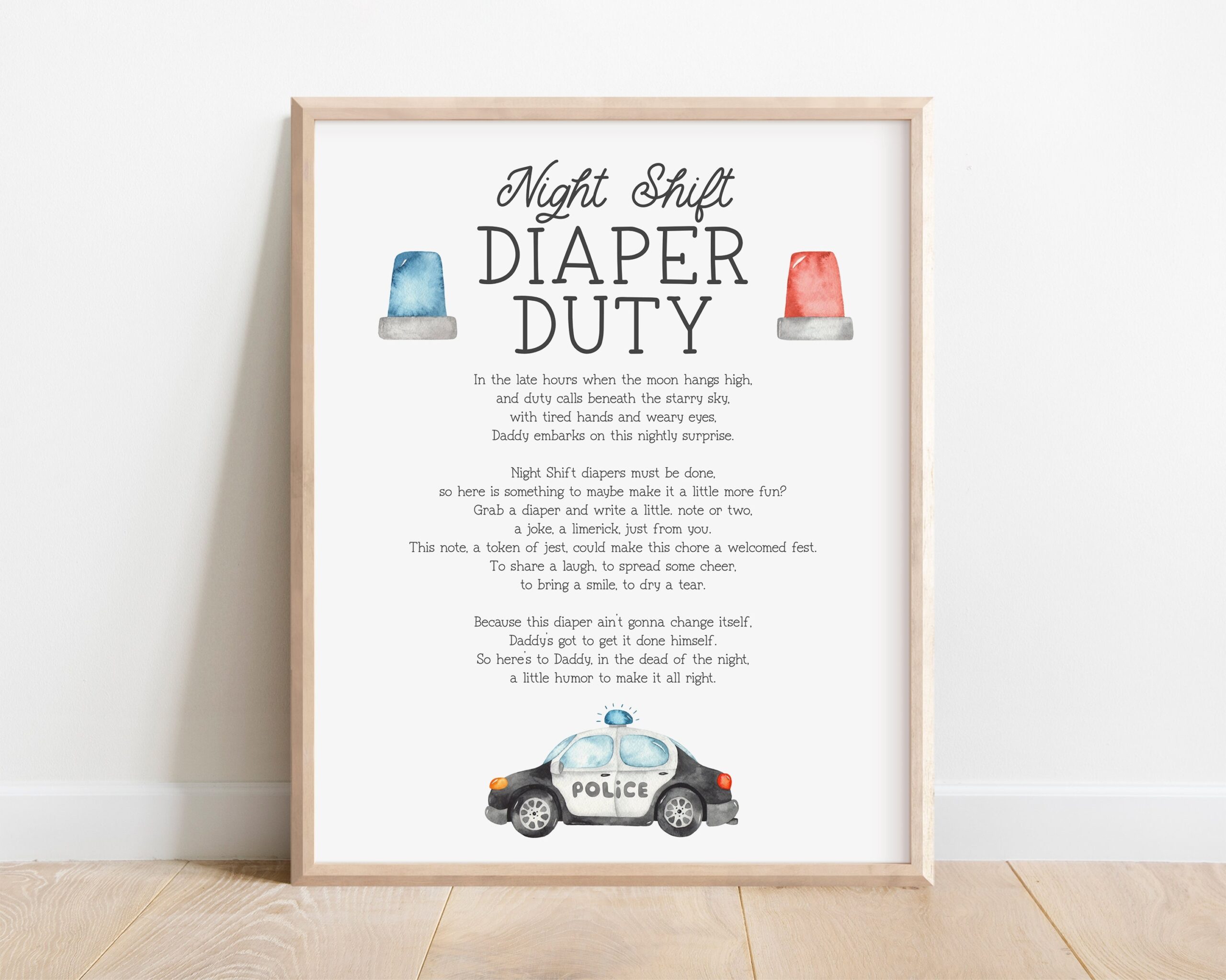 Police Baby Shower Activity Night Shift Diaper Duty Dad Baby Shower Diaper Game Printable 8×10 Instant Download Etsy