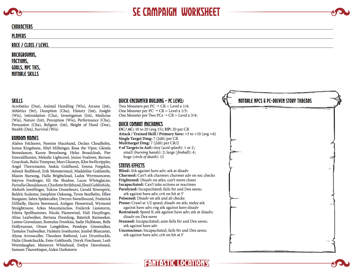 Dungeons And Dragons 5th Edition Campaign Worksheet SlyFlourish