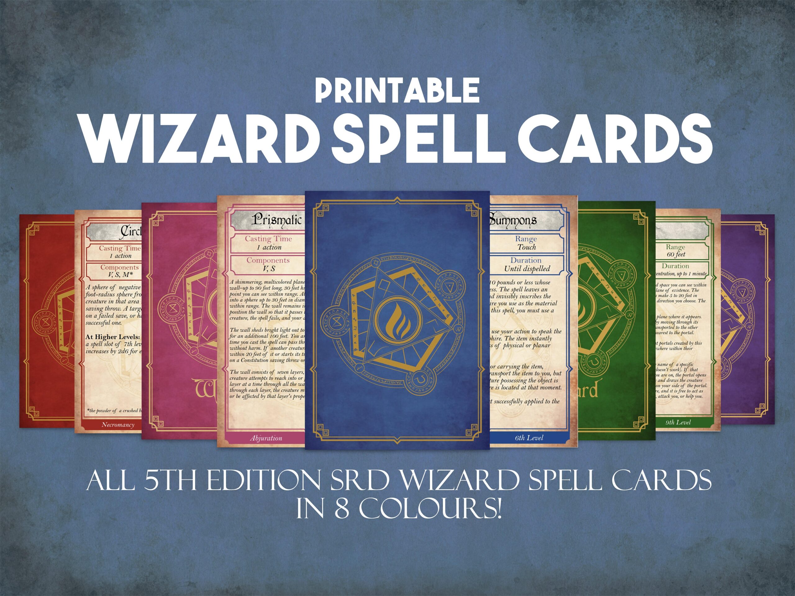 Wizard Dnd Spell Cards Dungeons And Dragons Printable Spell Cards Dungeon Master Accessories 237 Wizard Spell Cards Instant Download Etsy
