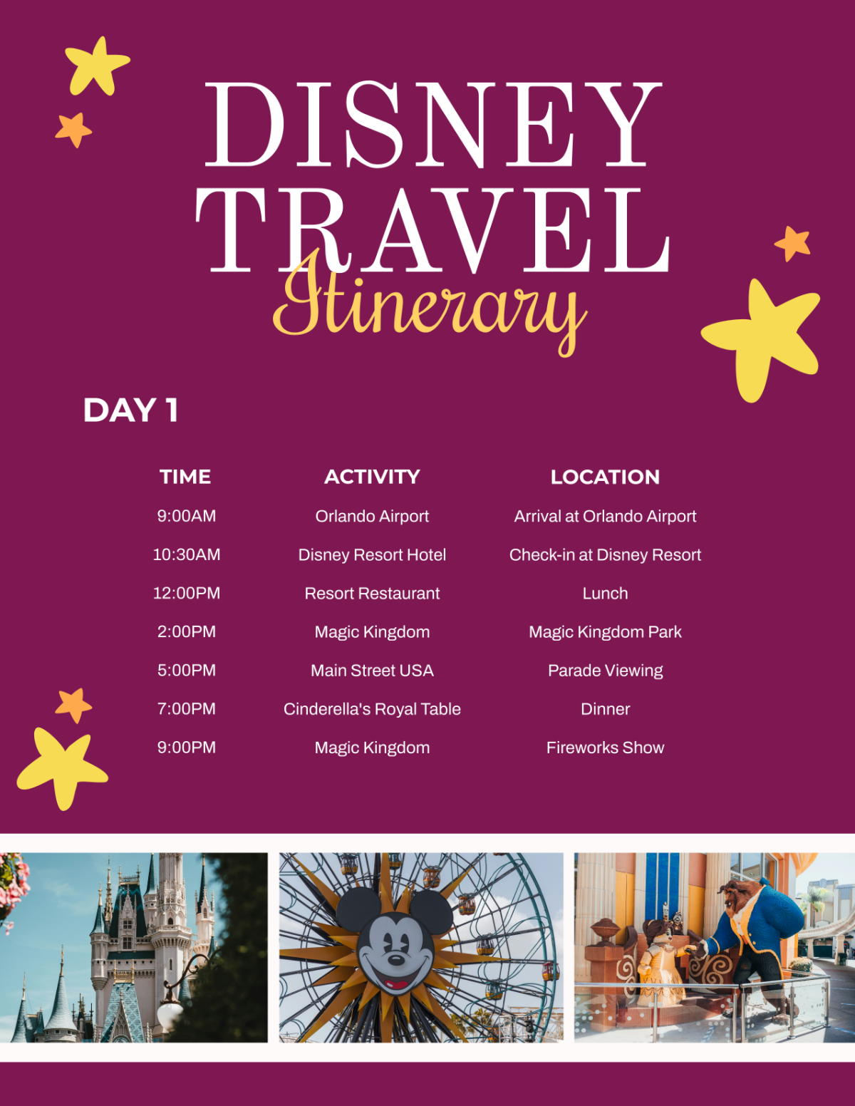 Ultimate Disney World Itinerary Free Google Docs Template Gdoc io