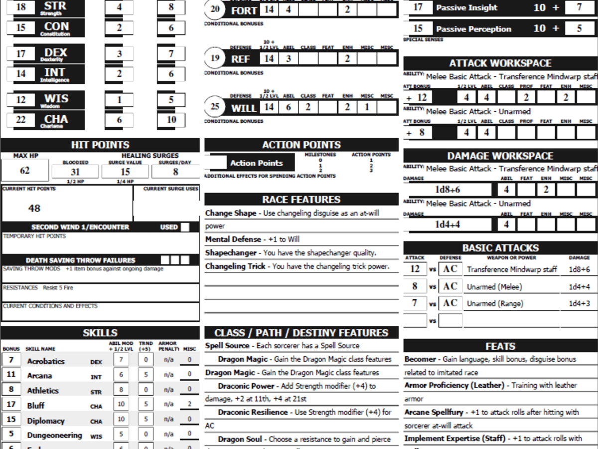 D d 4e Character Sheet Download Printable PDF Templateroller