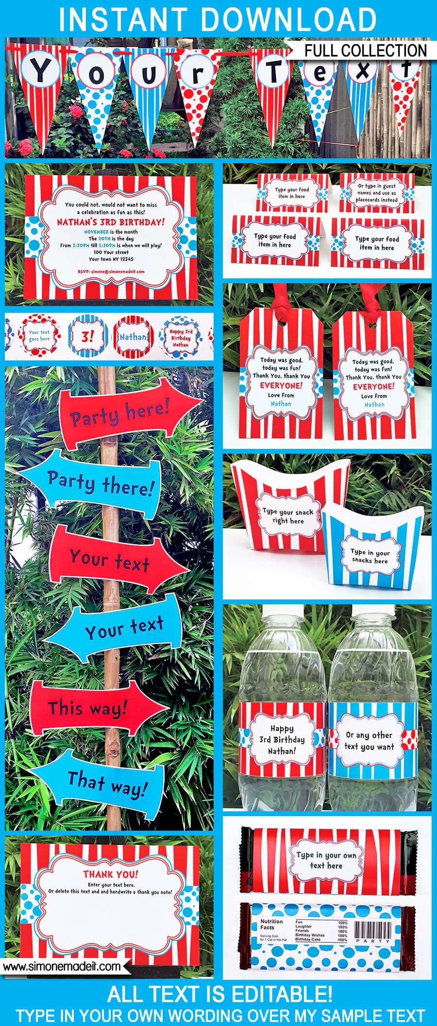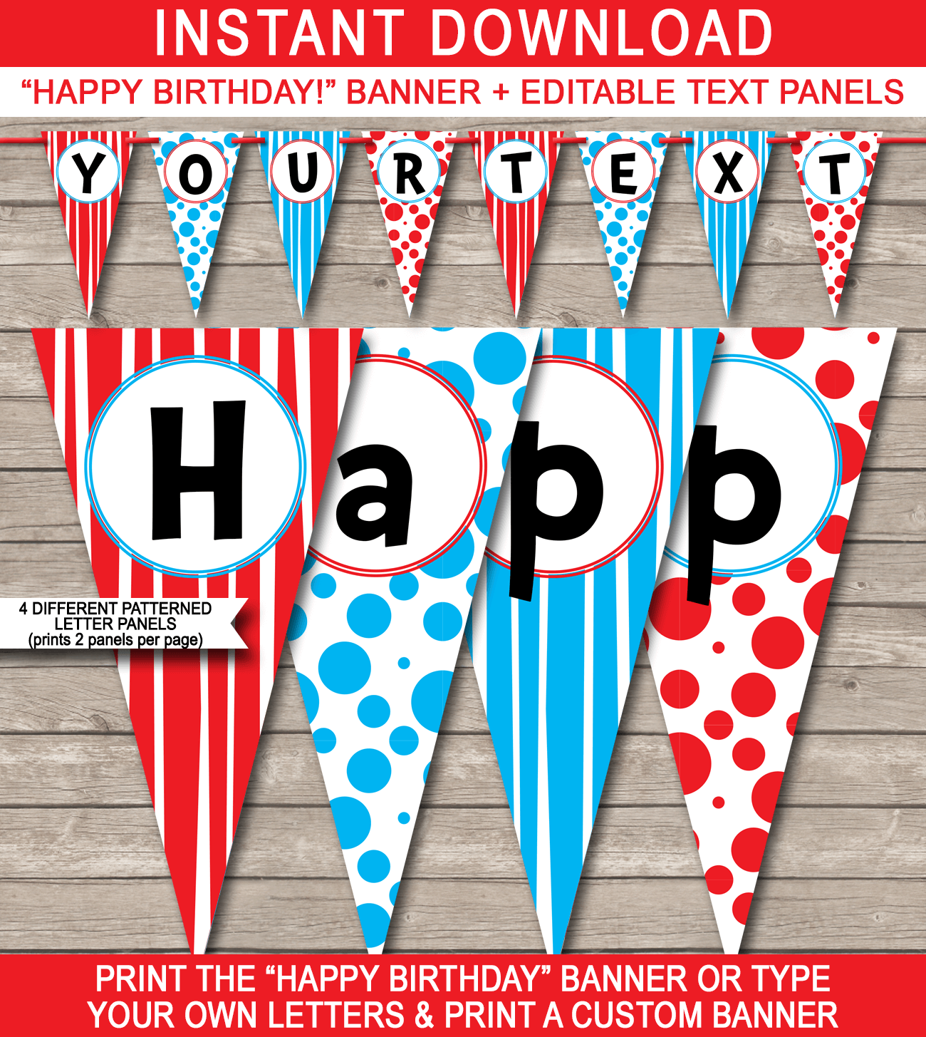 Dr Seuss Party Banner Template Birthday Banner Editable Bunting
