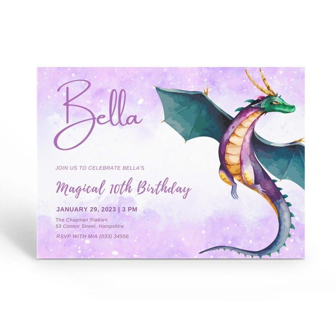 Printable Purple Dragon Invitation Girl Dragon Birthday Party Invitation Dragon Invite Dragon Birthday Invitation Etsy