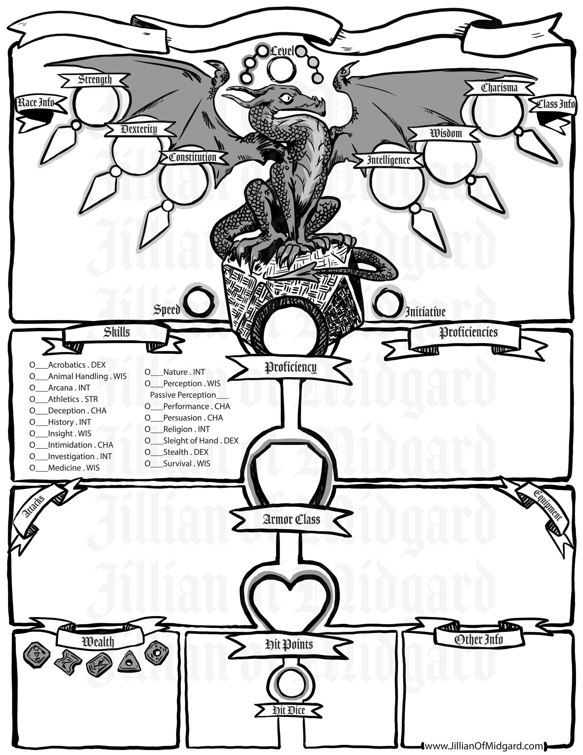 PDF Downloadable Jillian Of Midgard Illustrated D D 5th Ed Character Sheet Pack dragon Edition Etsy