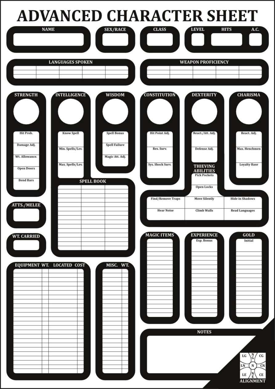 Dungeons And Dragons 1st Edition Character Sheet Printable