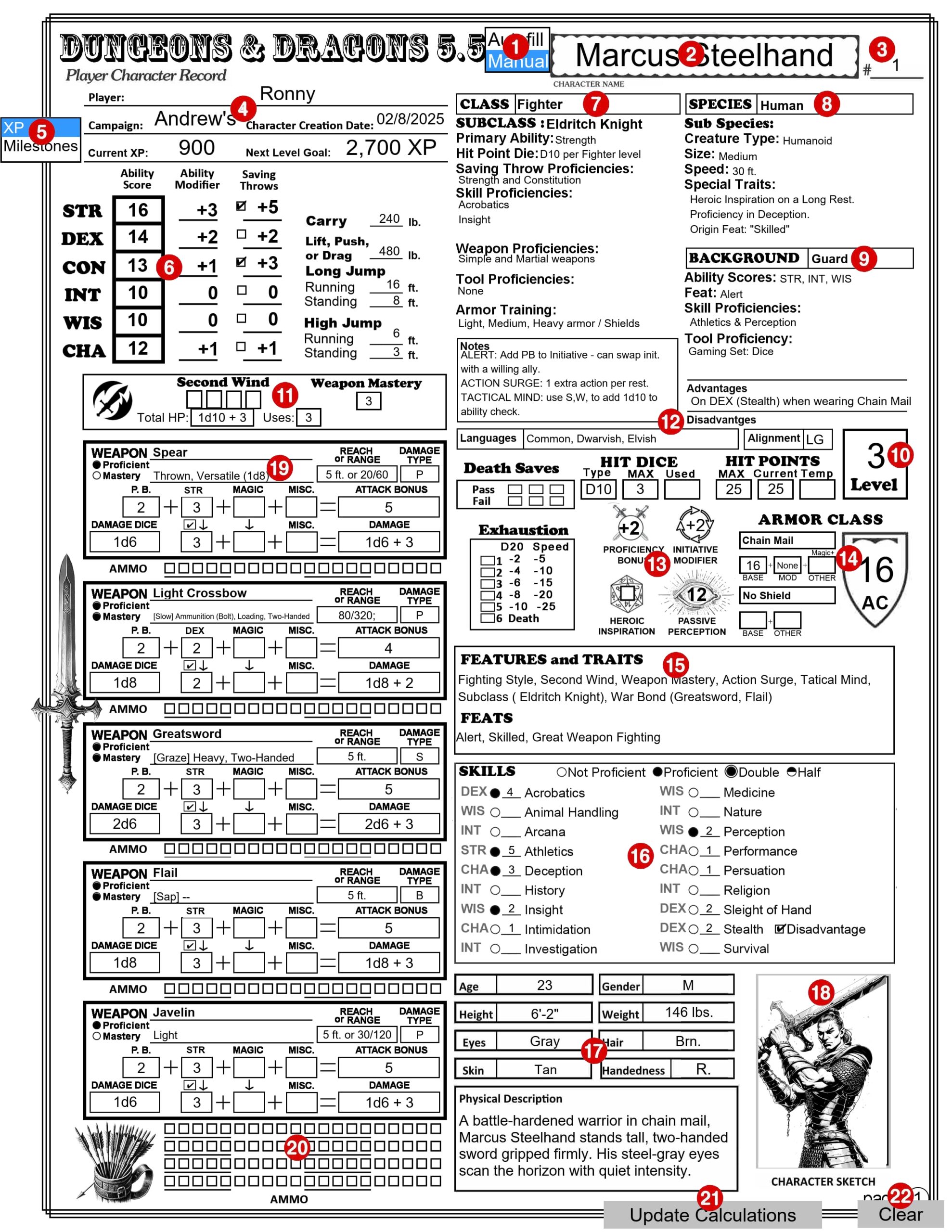 D D 5 5 Character Sheet Fillable And Auto Calculating Dungeon Master Assistance