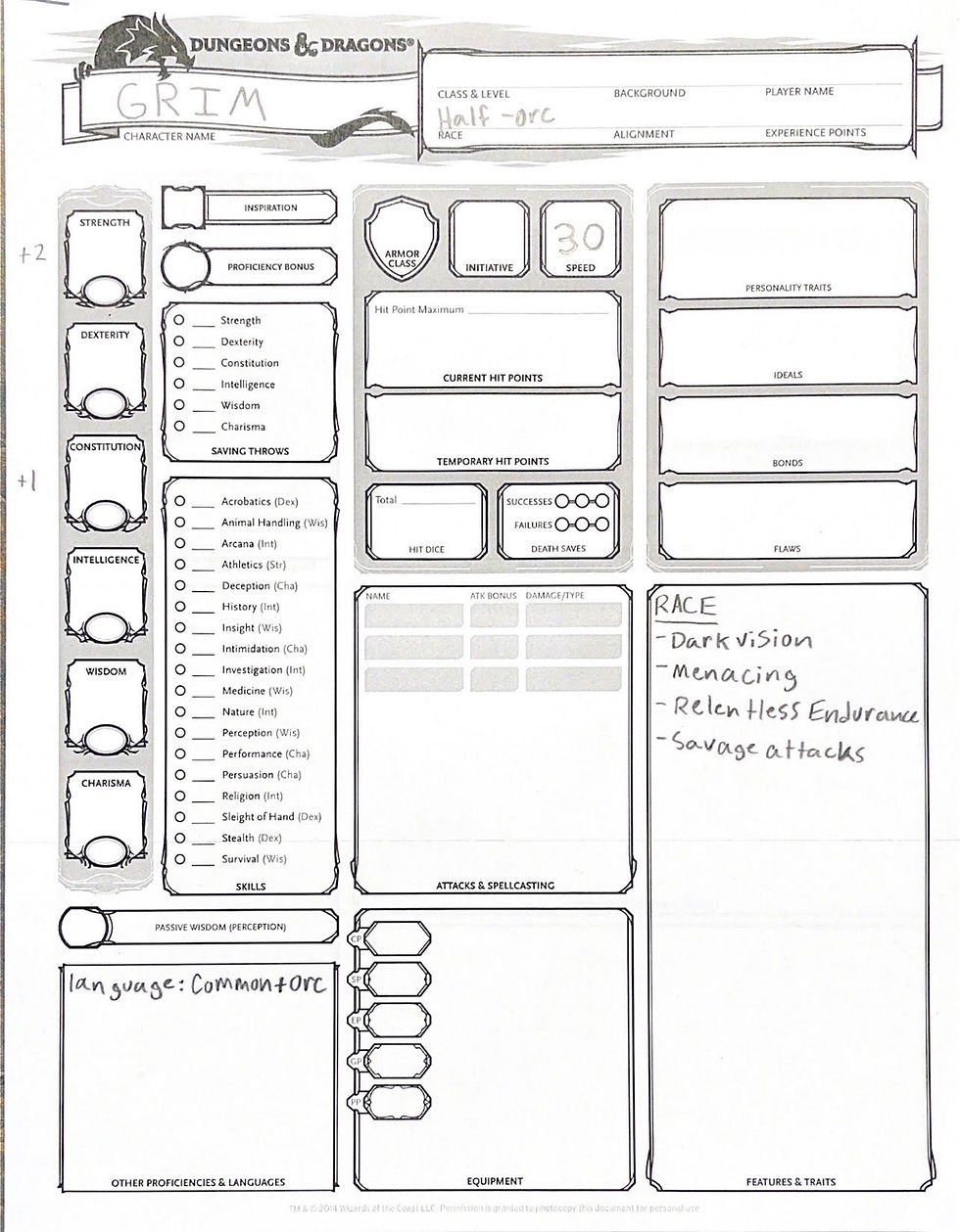 Dungeons & Dragons 5th Edition Adventure Force Printable Character Sheet