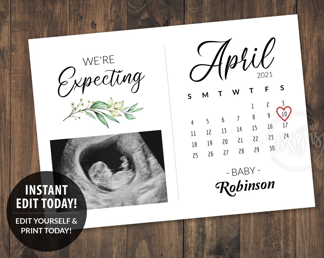 Pregnancy Announcement Printable Card Baby Announcement To Husband Grandparents Due Date Calendar April Expecting Digital Editable Etsy