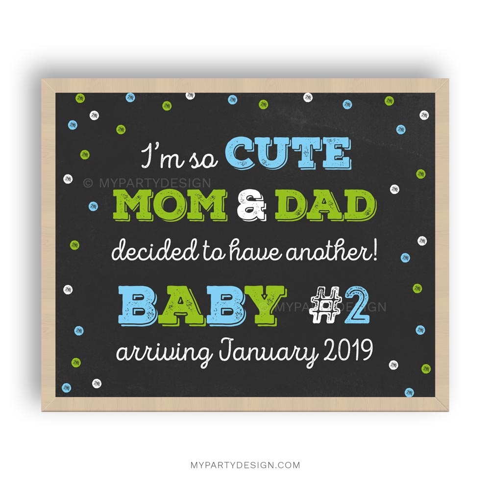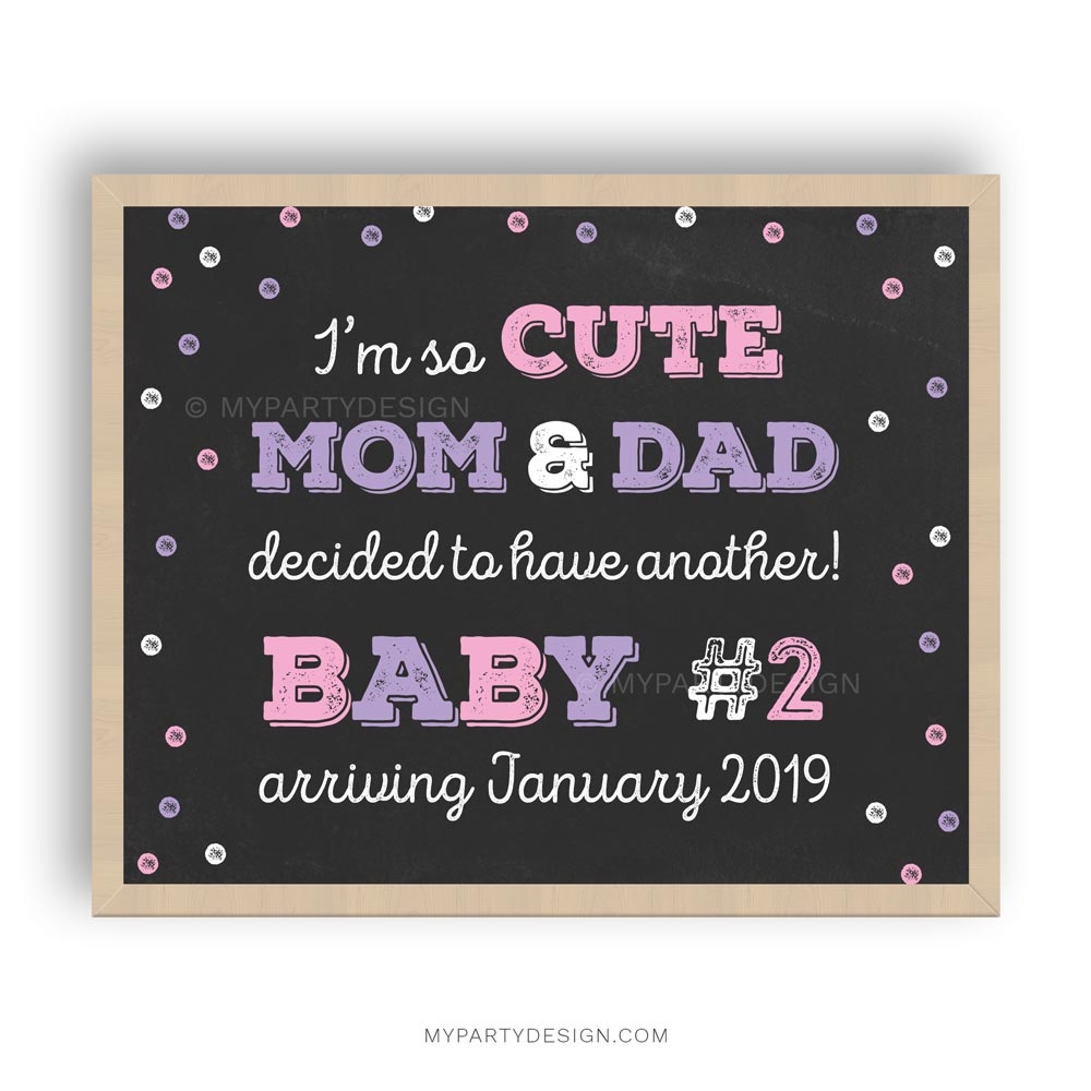 Second Baby Pregnancy Announcement Sign Printable My Party Design