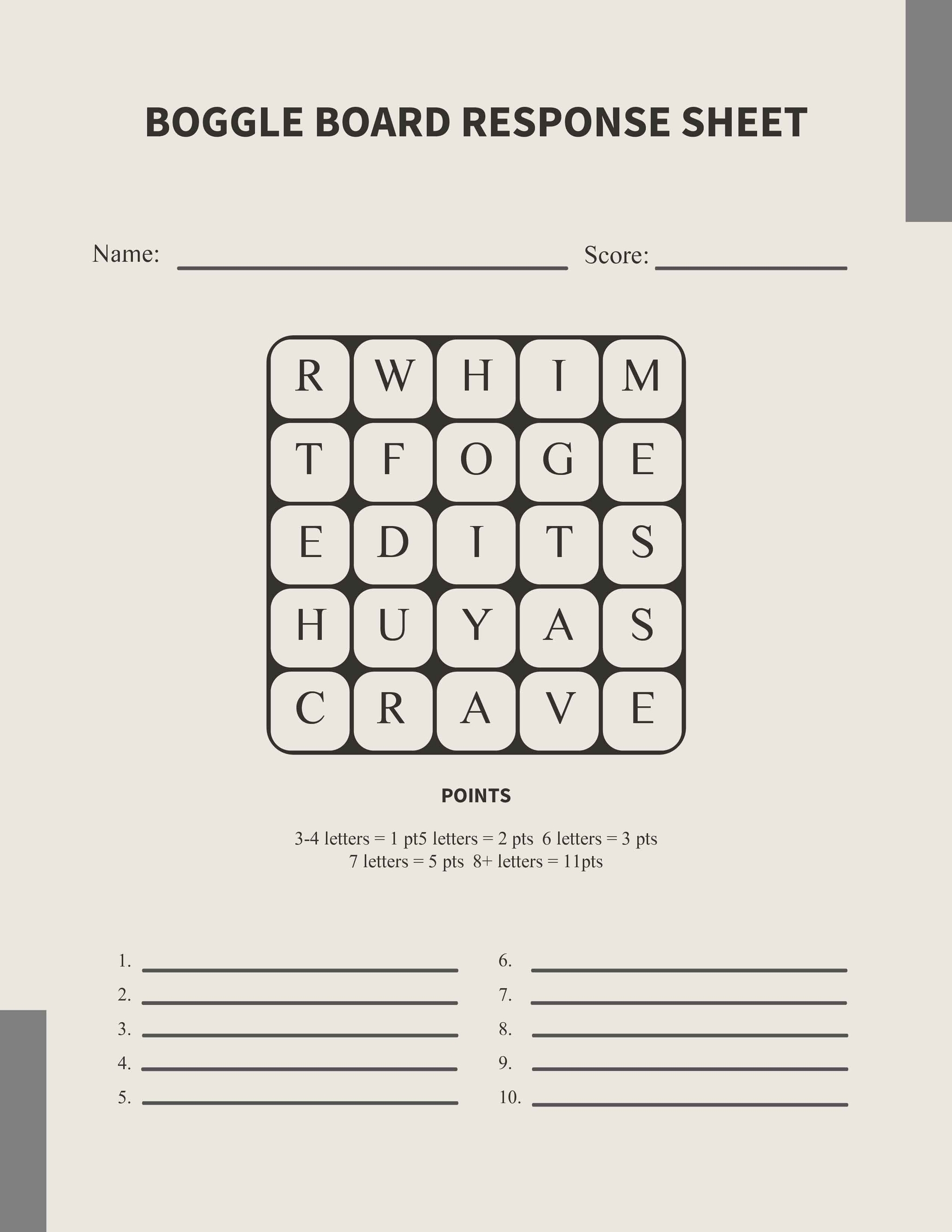 Boggle Board Worksheet Template In Word Pages PDF Google Docs Download Template