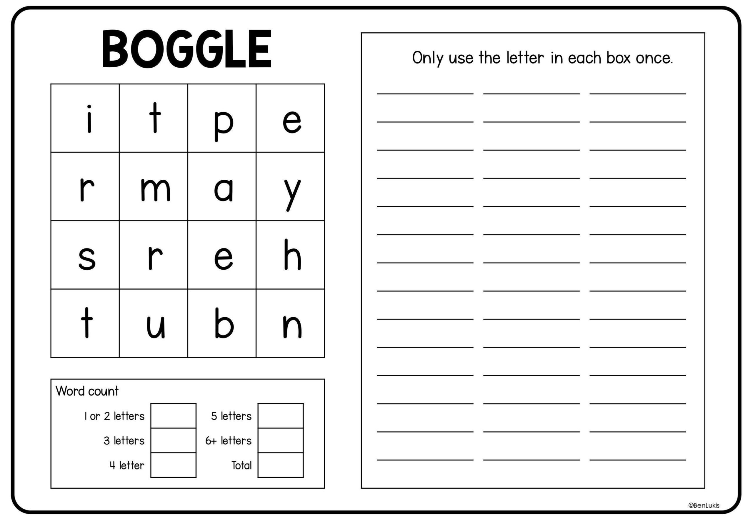 Boggle Word Game Printable Pages Printable Word Puzzle Pages And Educational Game Sheets Making Words And Spelling Practice Worksheets Etsy