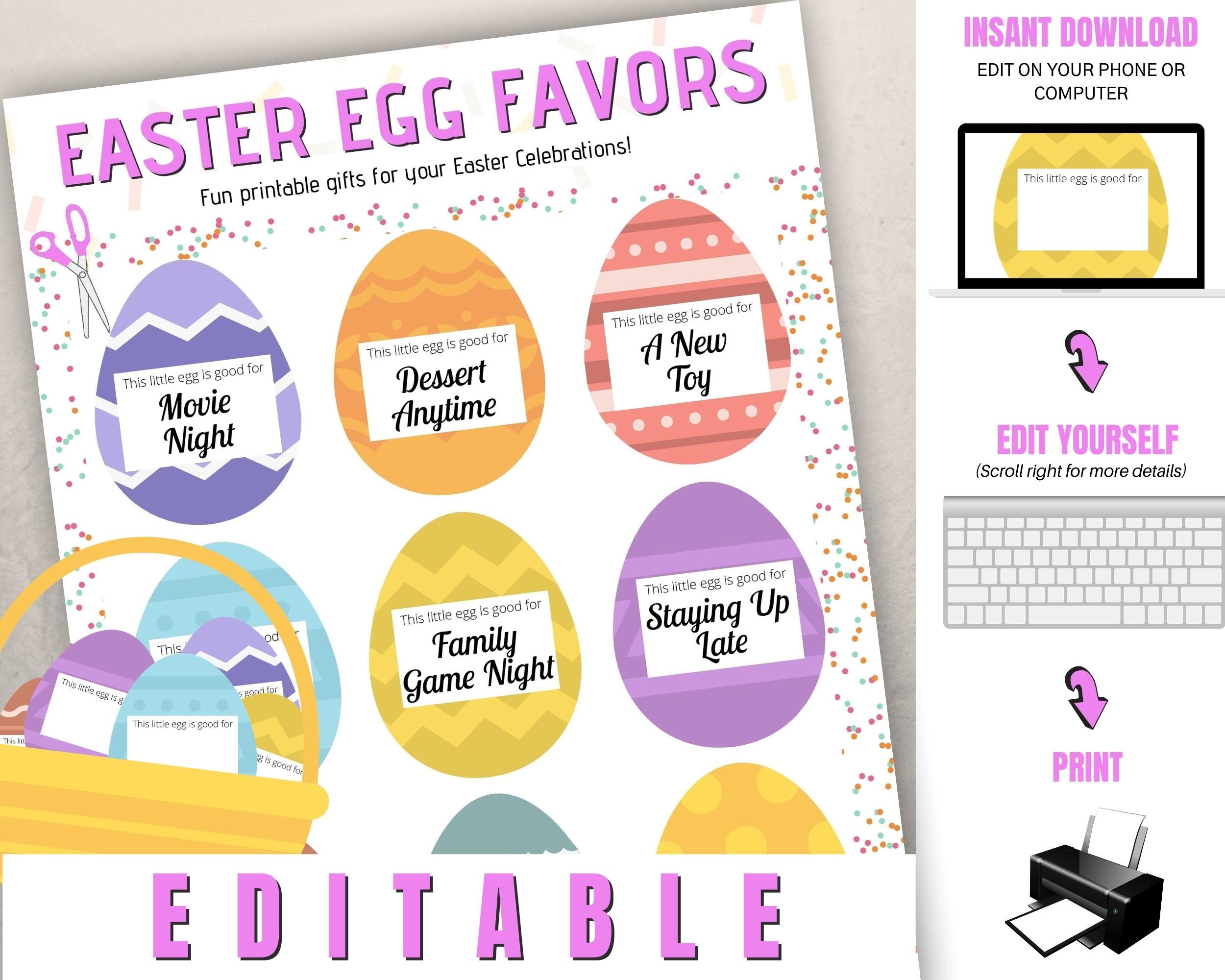 Printable Easter Gift Easter Basket Stuffers Easter Egg Favors Editable PDF Etsy