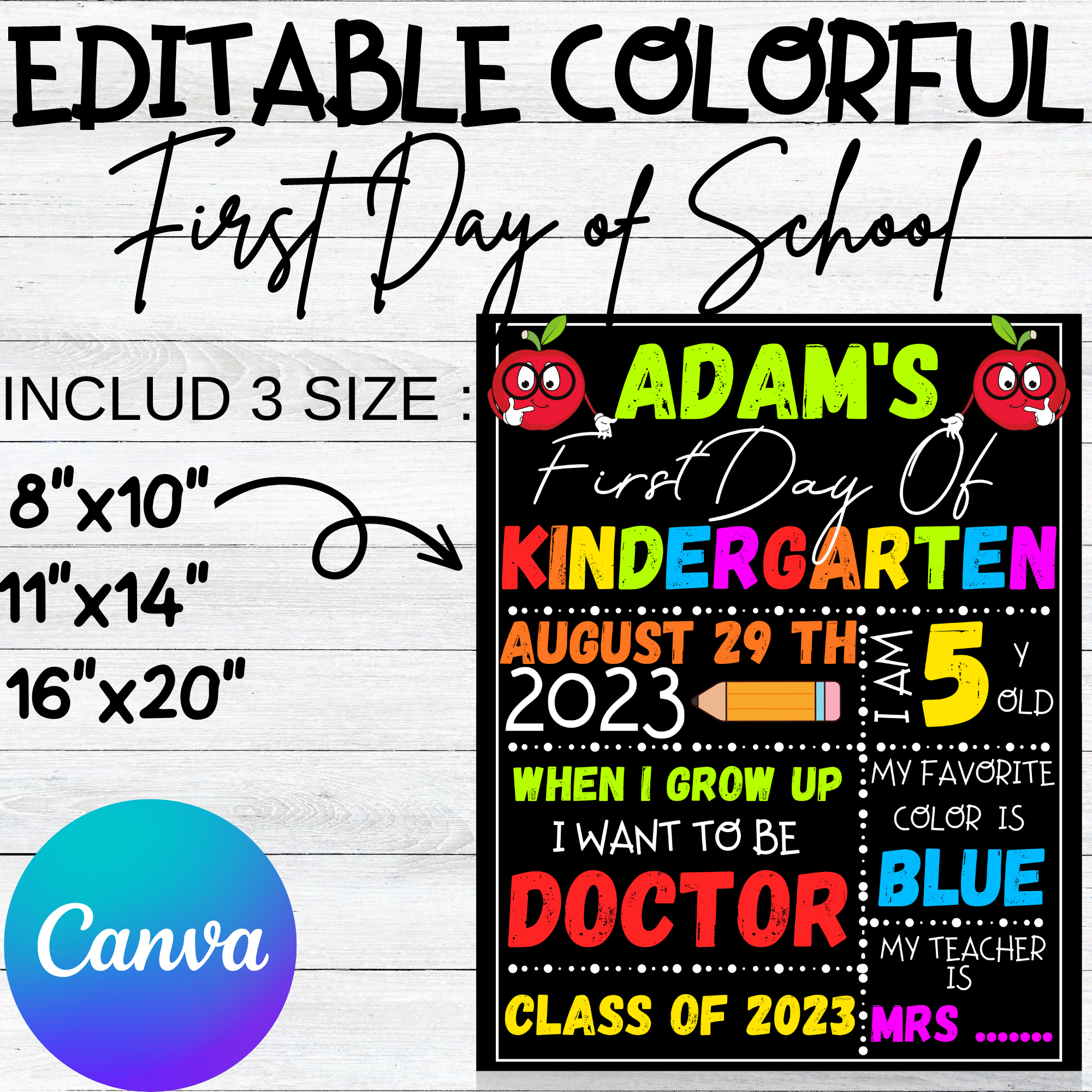 Editable Colorful First Day Of School Chalkboard Sign Made By Teachers