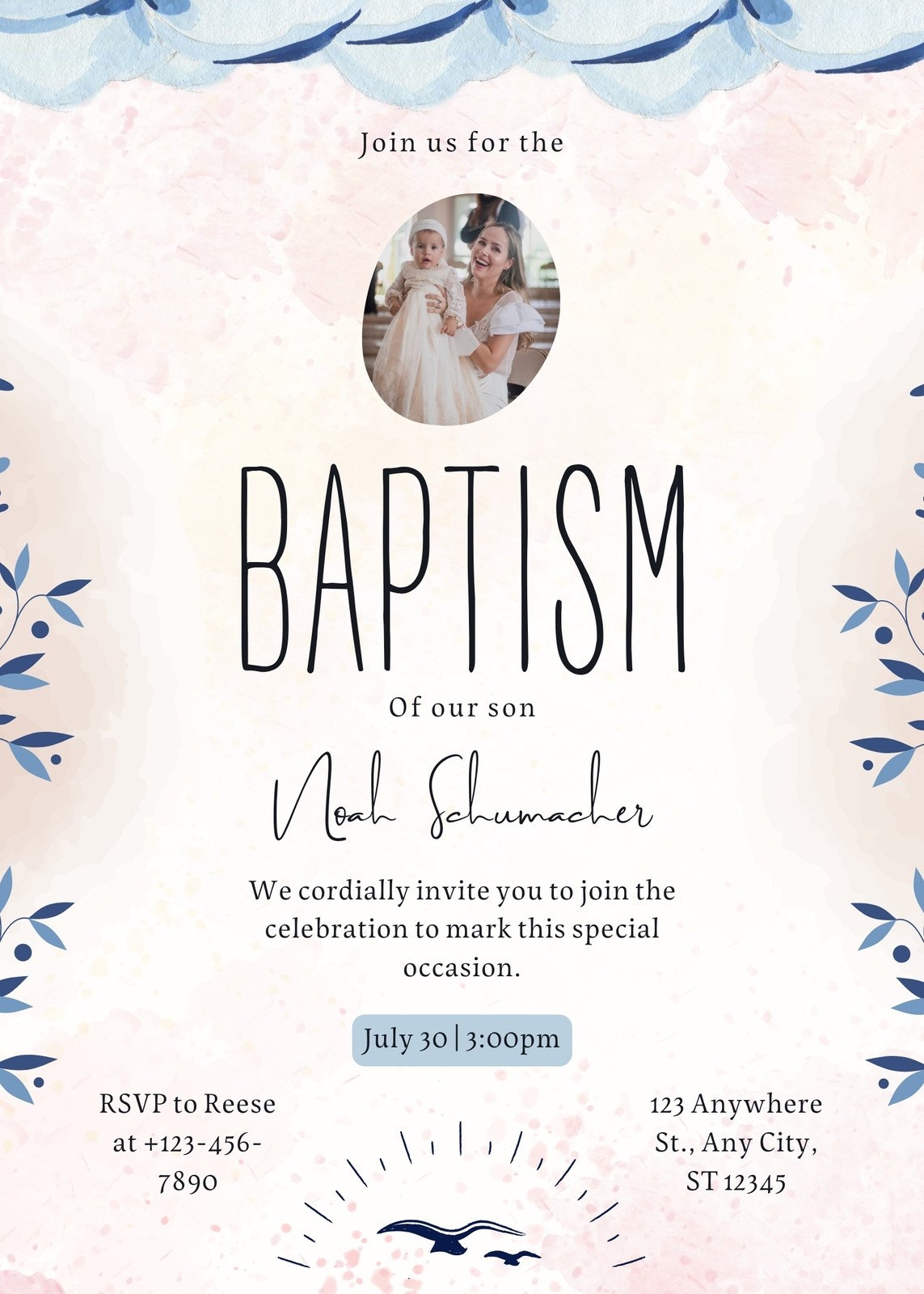 Personalized invitations add a special touch to your baptism celebration and show your guests that you have put thought and care into inviting them to share in this meaningful moment. With editable templates, you can create invitations that truly reflect the joy and significance of the occasion.