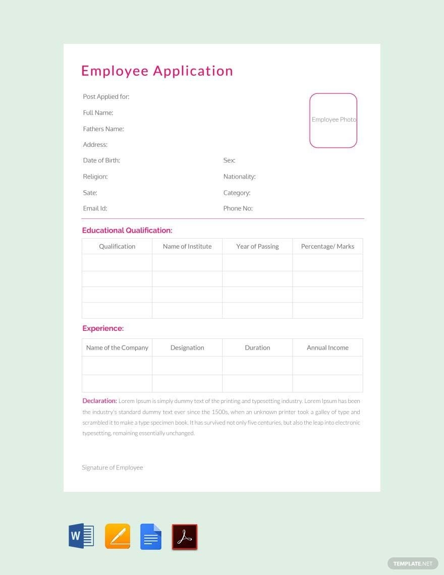 Employee Application Template In Word PDF Pages Google Docs Download Template