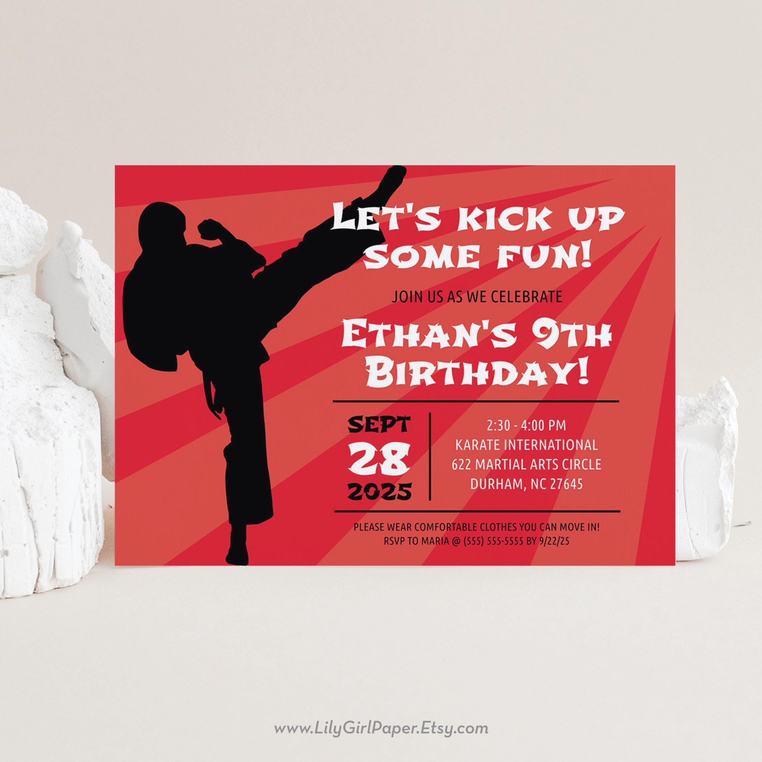 Editable Karate Birthday Party Invitation Template Tae Kwon Do Martial Art Party Invitation Instant Download Printable 0124 Etsy