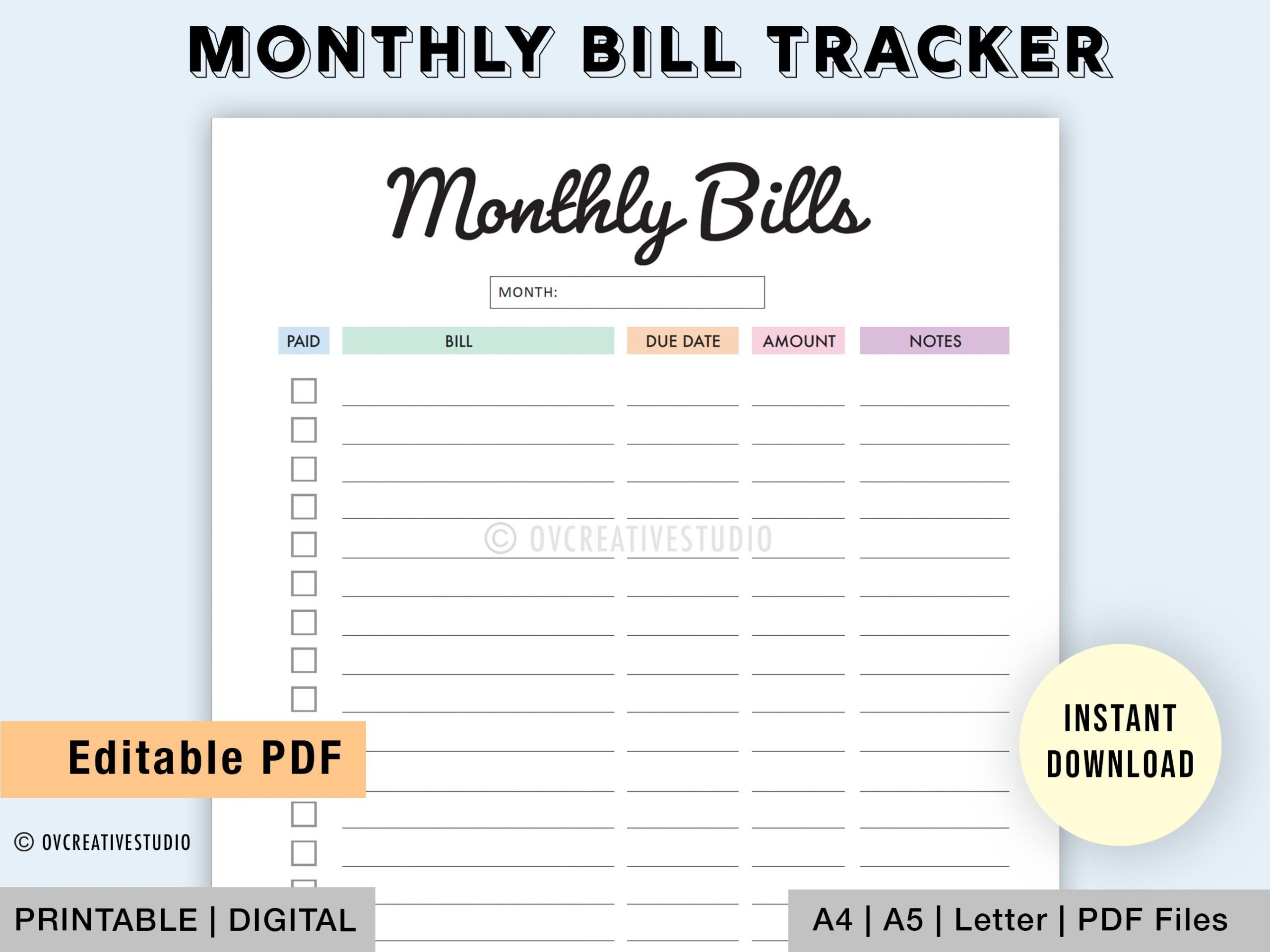 Editable Monthly Bill Tracker Printable: Stay Organized and Stress-Free