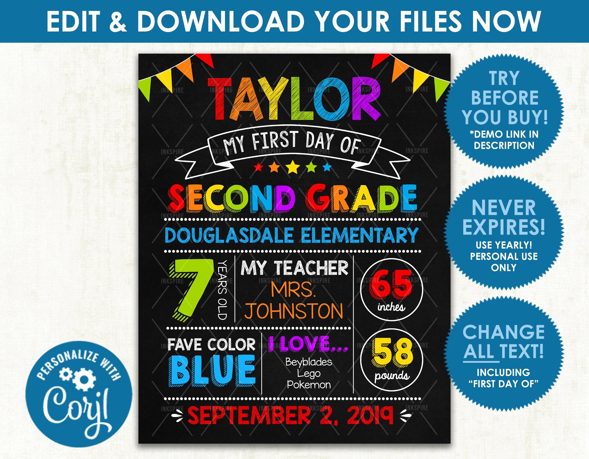 Editable First Day Of School Poster DIGITAL FILE Printable Rainbow Boys Back To School Sign Download Edit Yourself NOW Etsy New Zealand