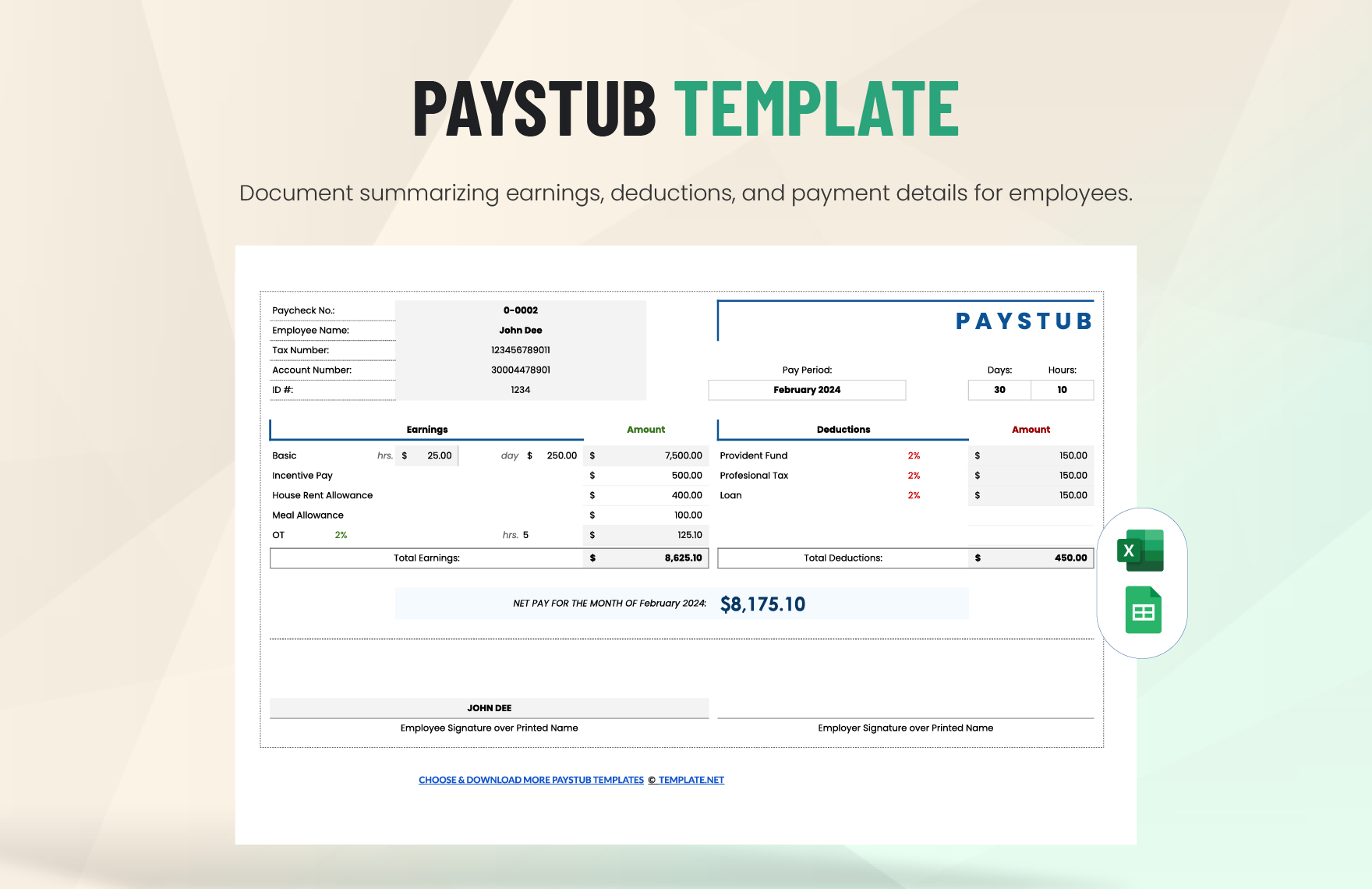 Editable Paycheck Logo Printable Excel Template