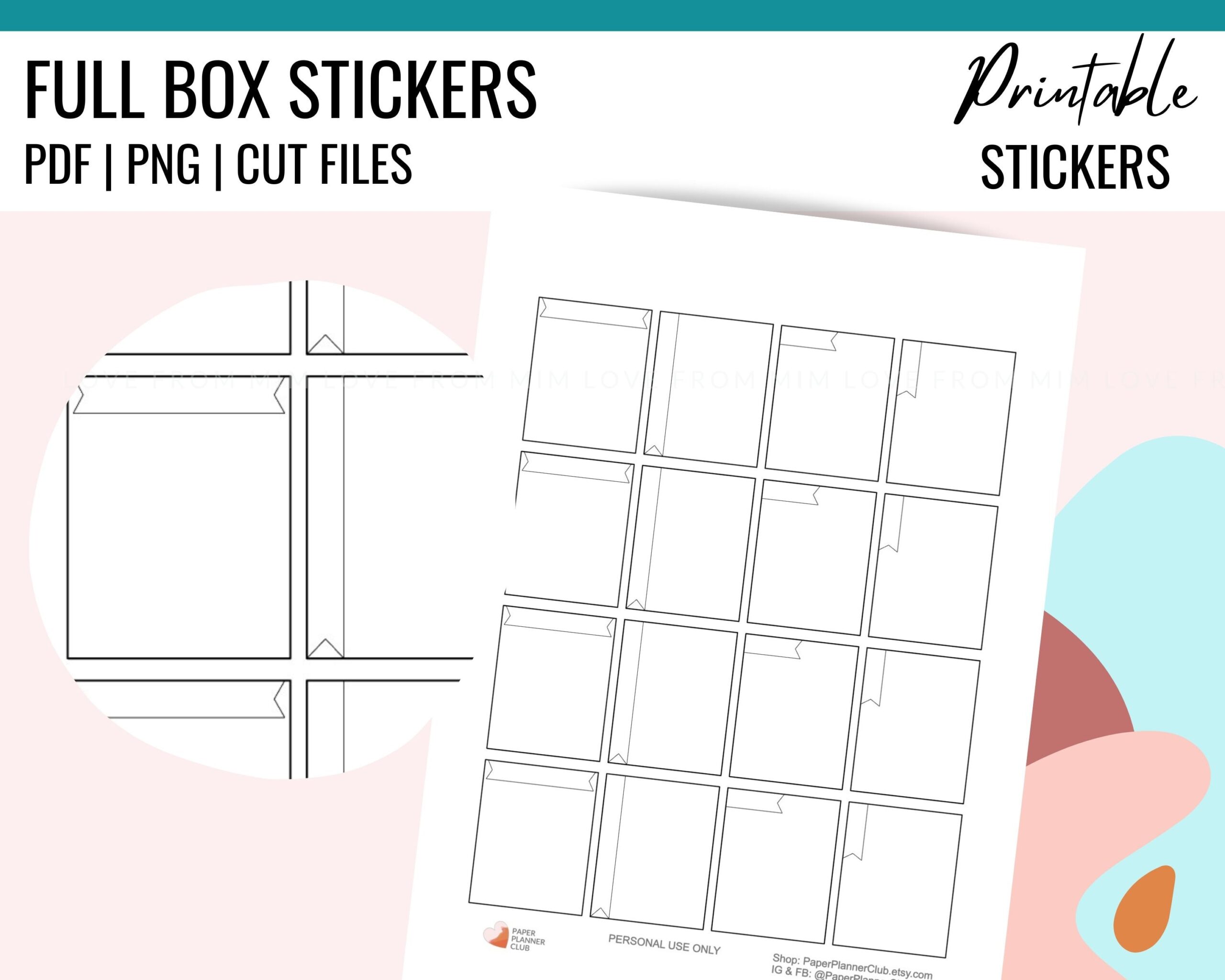 FULL BOX Printable Planner Stickers Cut Files Flag Header Daily Journal Black And White Full Box EC Stickers 1 5 X 1 9 Etsy