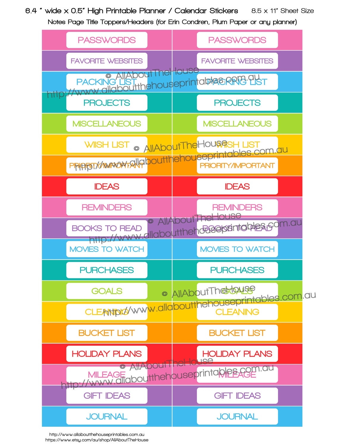 Notes Page Title Topper Header Planner Stickers Checklist Printable To Do List Ideas Tasks Rainbow ECLP Plum Paper Ect NPTS001 Etsy