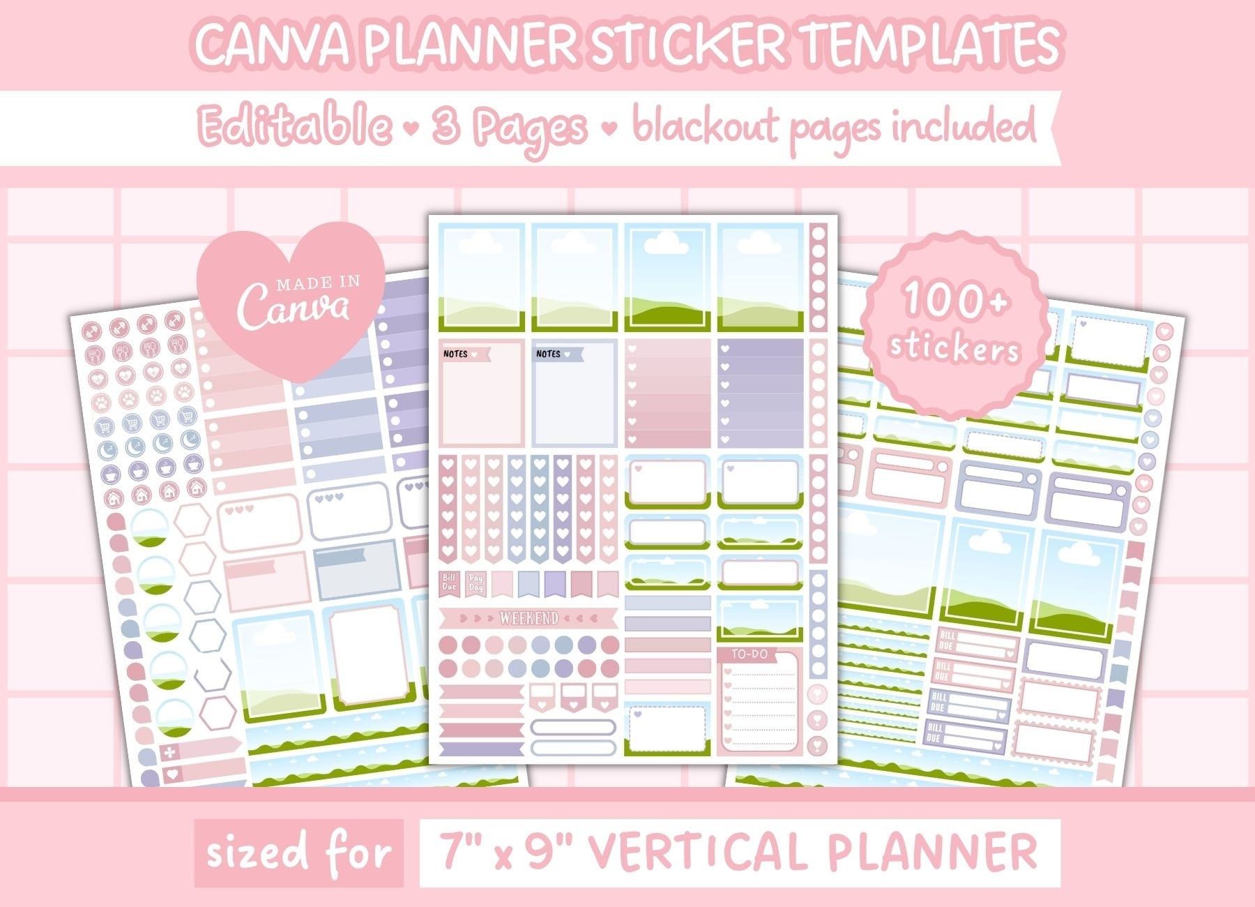 Canva Editable Planner Sticker Template Erin Condren Planner Stickers Commercial Use 3 Sheets 6 75 X 9 25 Inch Instant Download Etsy