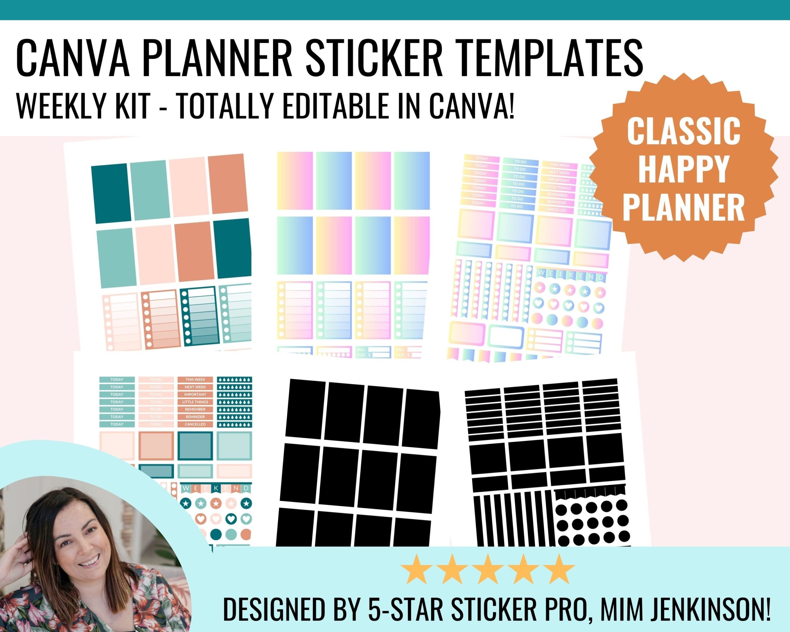 Editable Canva Planner Sticker Templates Classic Happy Planner Week Kit Personal Or Commercial Use Sell Printable Planner Stickers Etsy