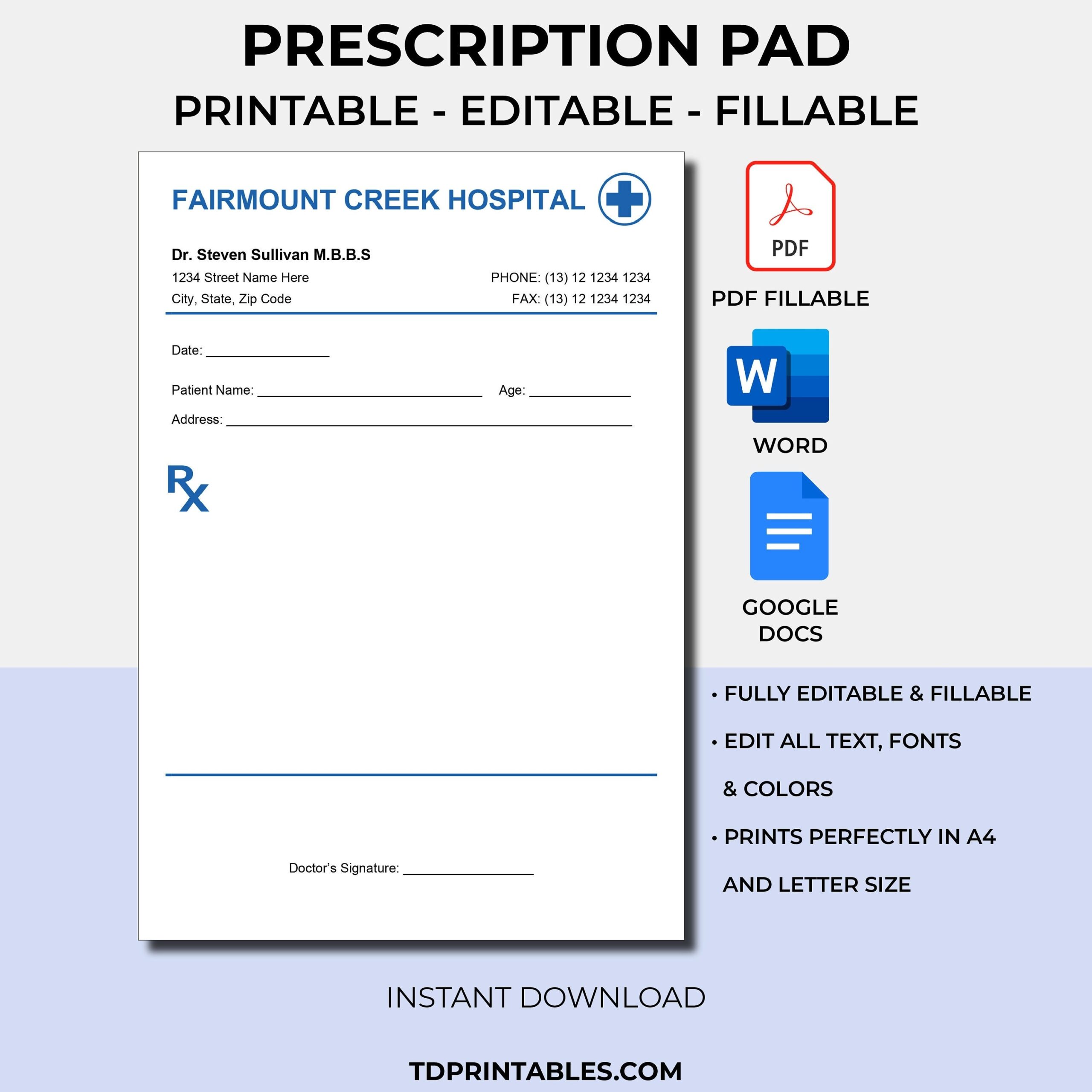 Editable Prescription Pad Template Medical Prescription Prescription Design Prescription Notepad Doctor Prescription Doctor Template Etsy