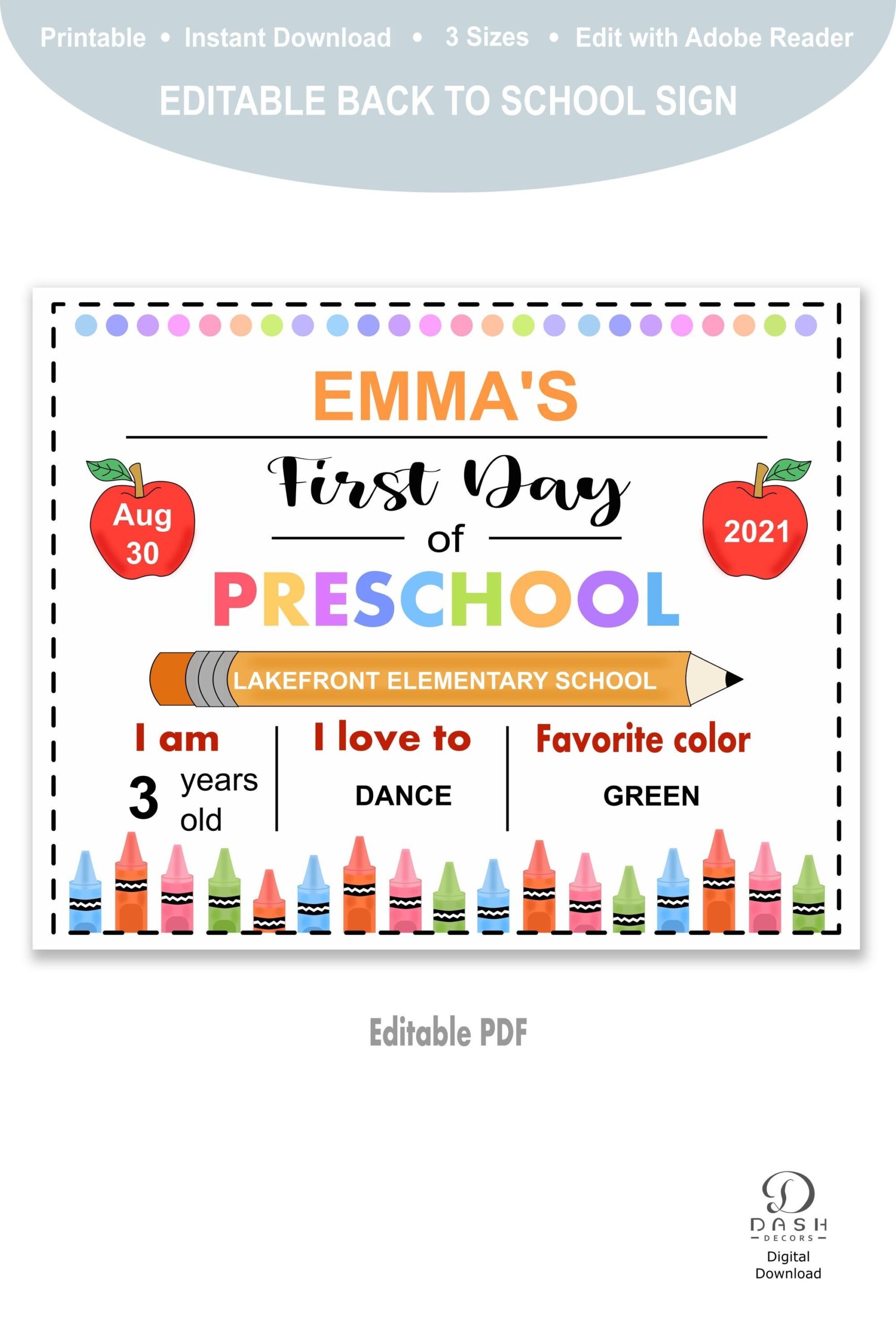 Editable Back To School Sign Personalized First Day Of School Sign 1st Day Of Preschool Printable Sign Back To School Photo Prop Etsy