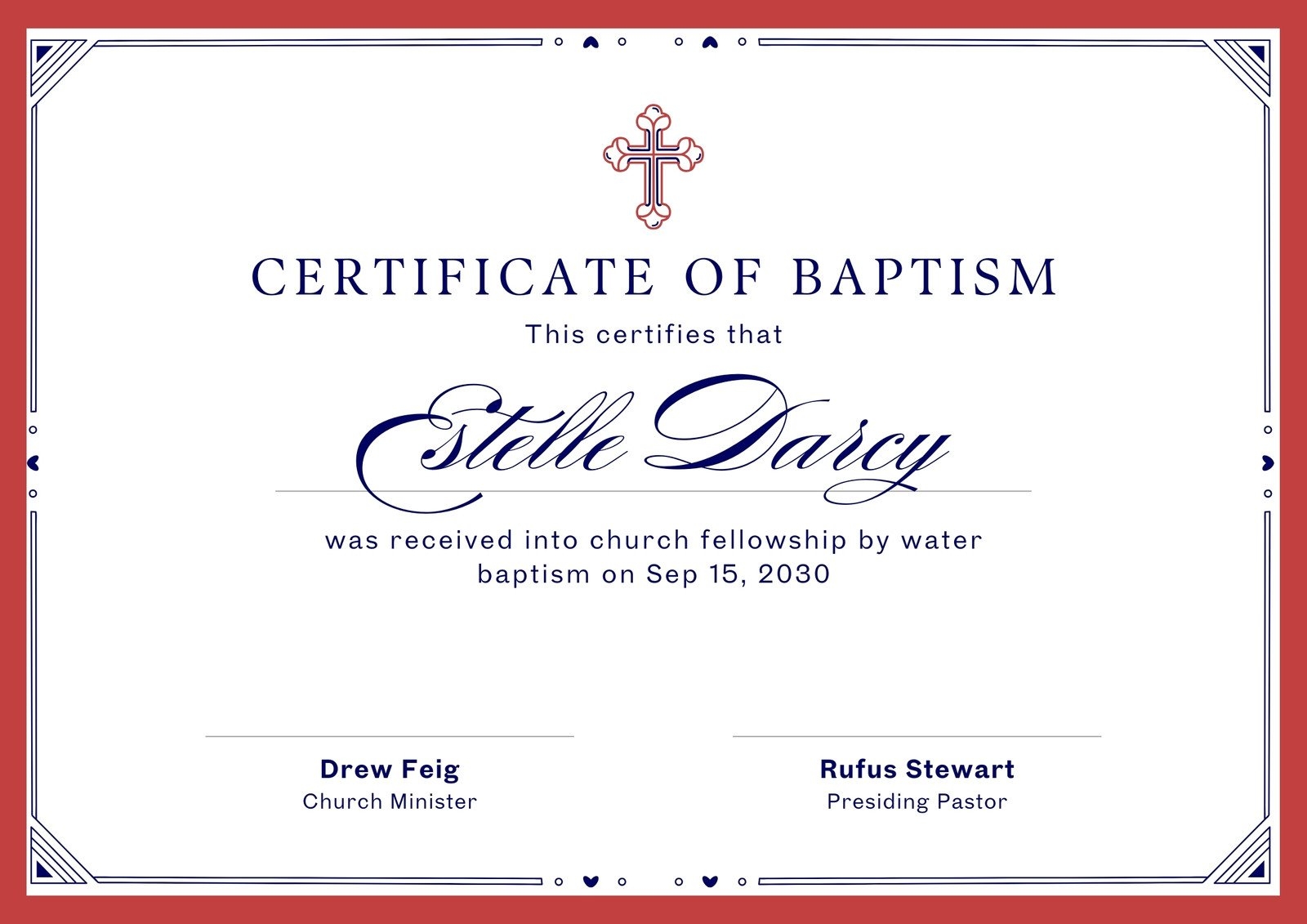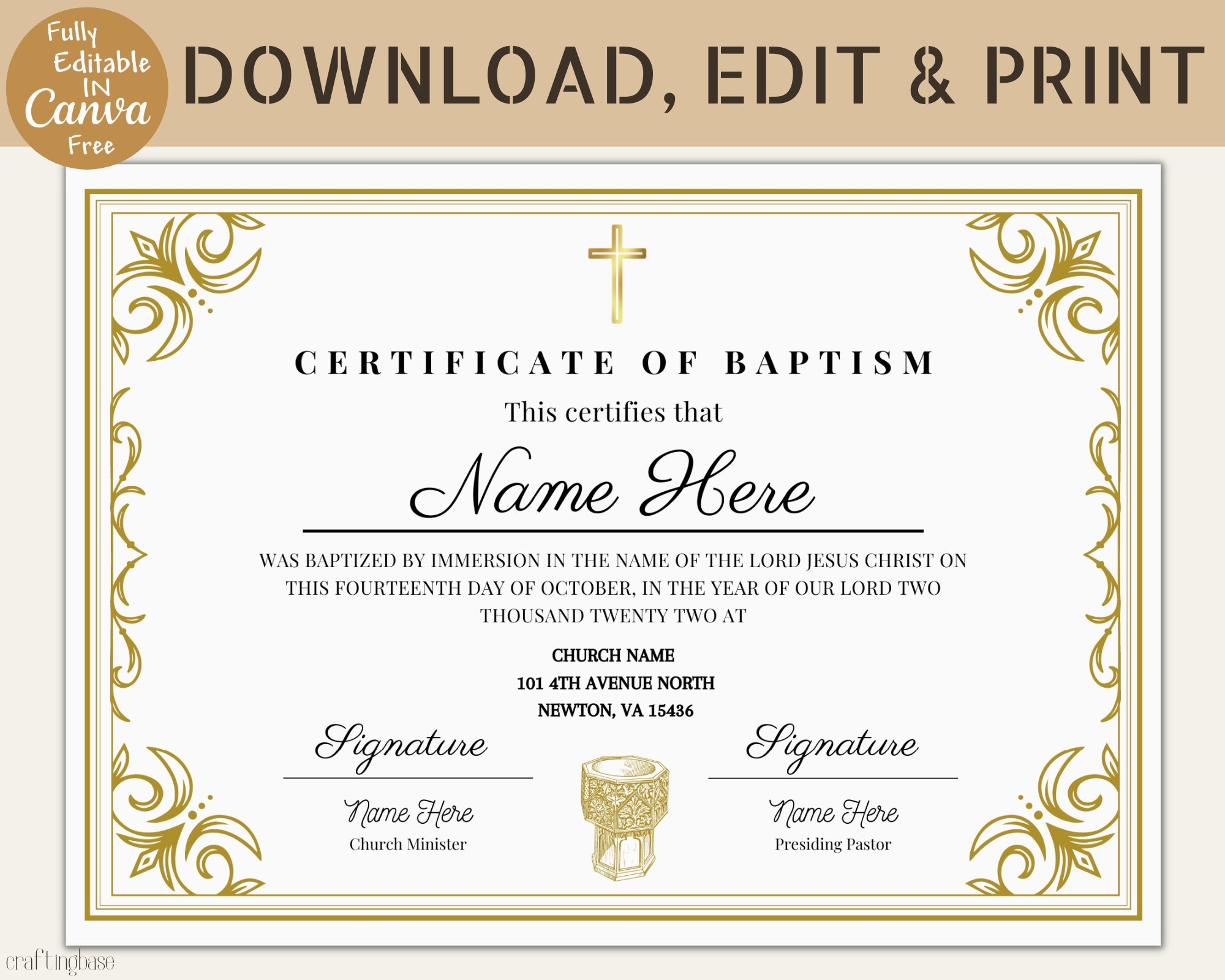 Creating a personalized baptism certificate is a simple and thoughtful way to commemorate this important event. By customizing the certificate with meaningful details and choosing a design that resonates with you, you can create a lasting memento that captures the significance of the occasion.