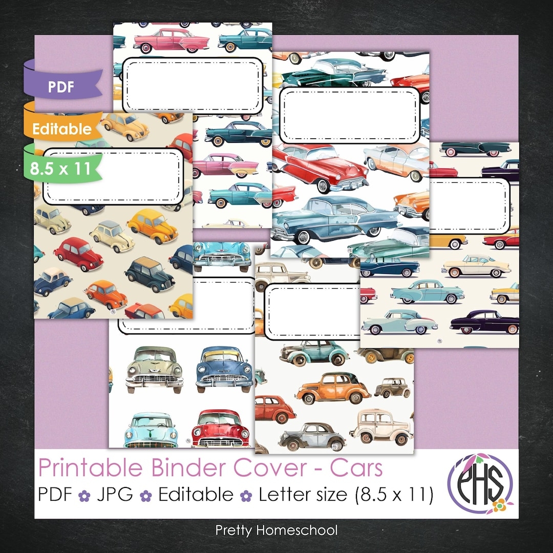 Printable And Editable Binder Covers And Spines Vintage Cars Theme Homeschool Binder Homeschool Mom Homeschool Teacher Binder Etsy
