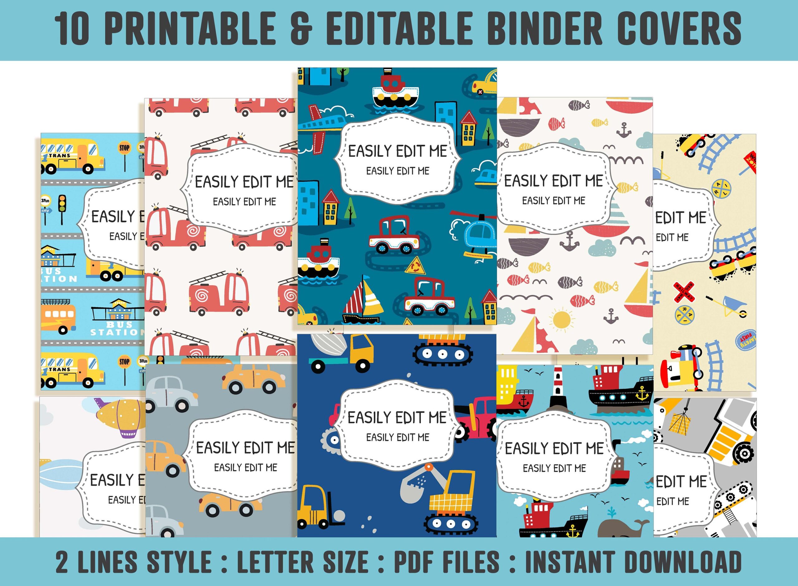 Vehicle Binder Covers 10 Printable editable Binder Covers Spines Teacher school Binder Planner Template Transportation Binder Inserts Etsy