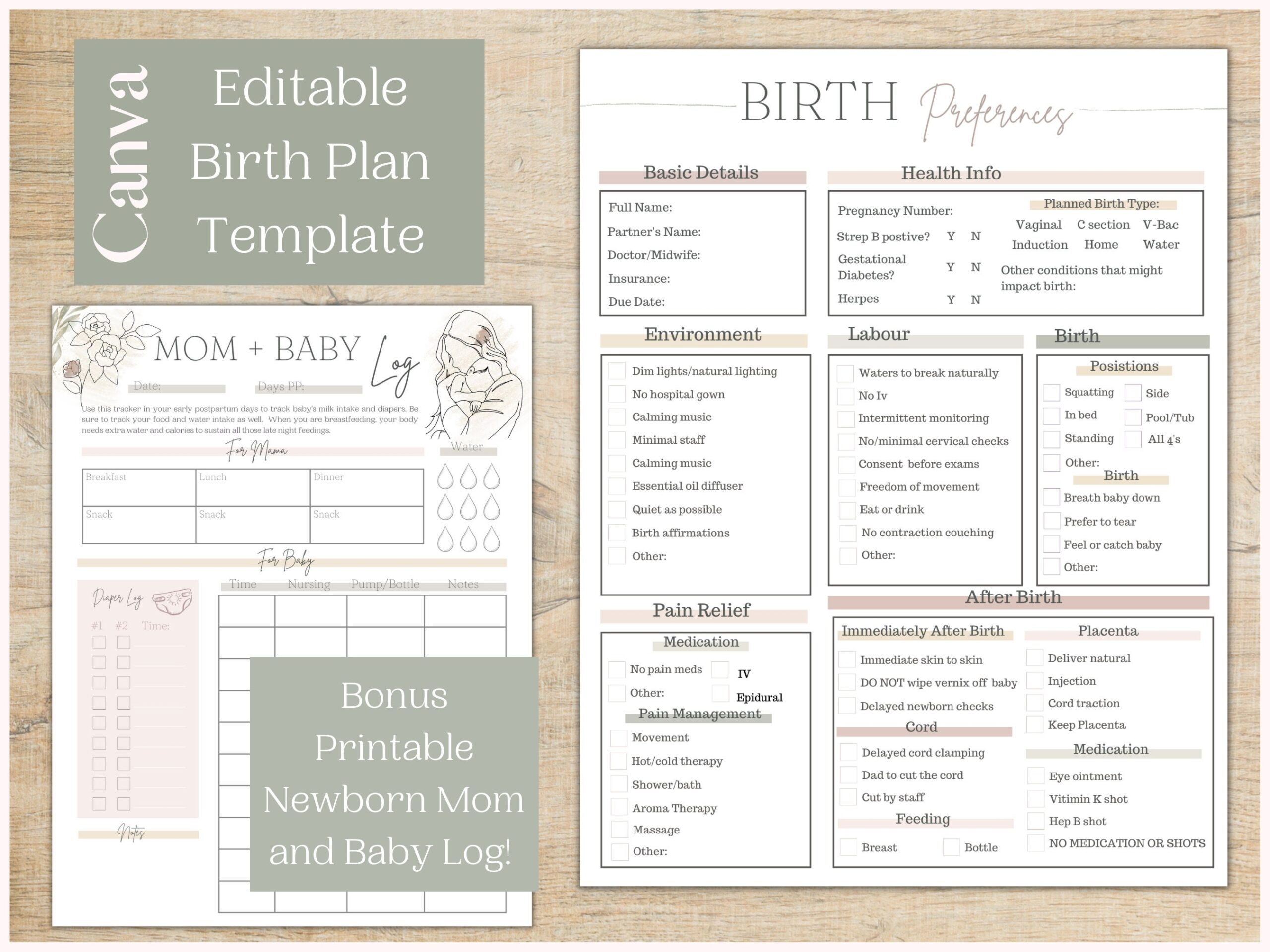 Editable Birth Plan Template Printable Birthing Plan Labour And Delivery Preferences Template Etsy